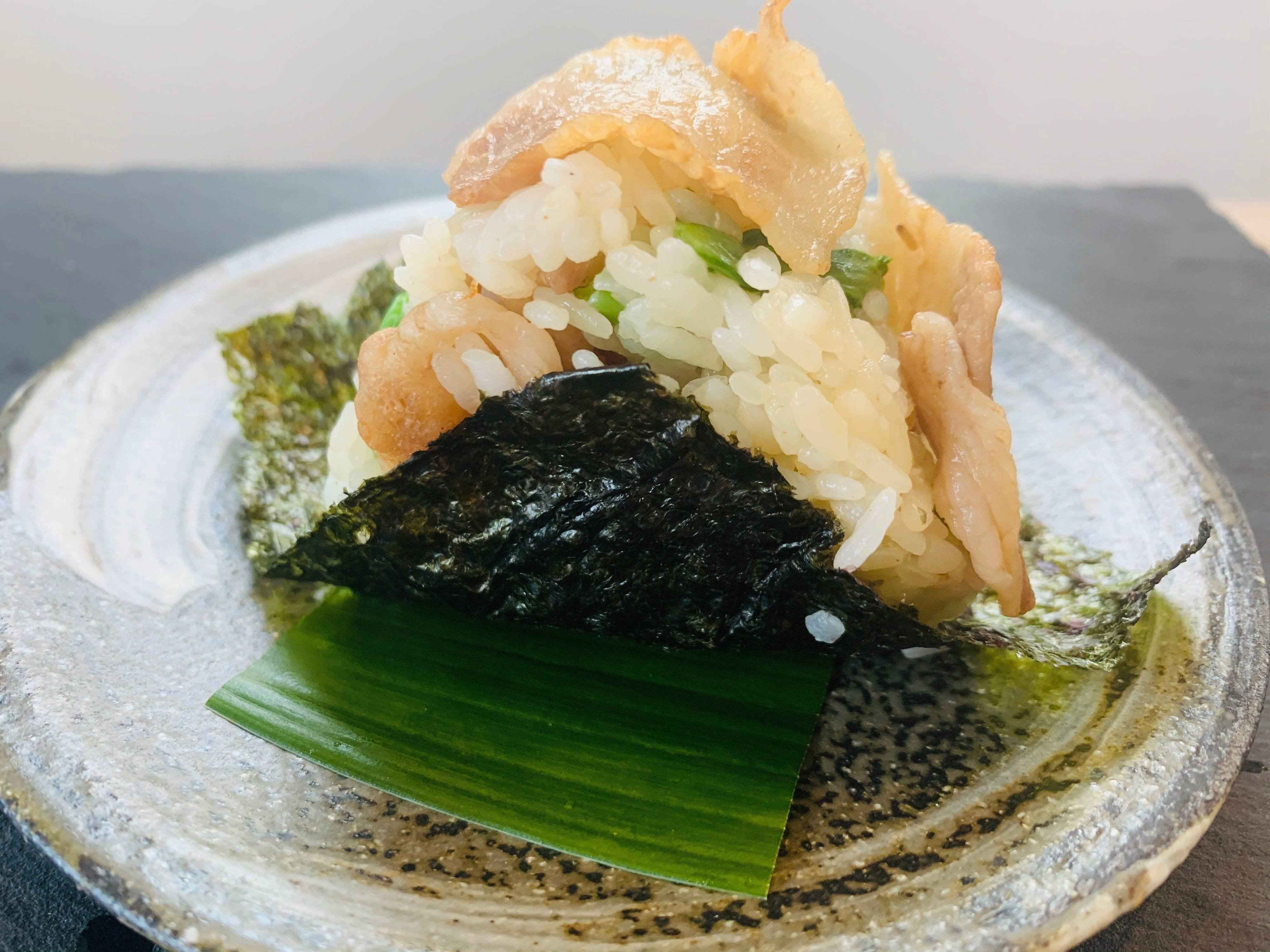 豚バラと小松菜の酢飯おにぎり