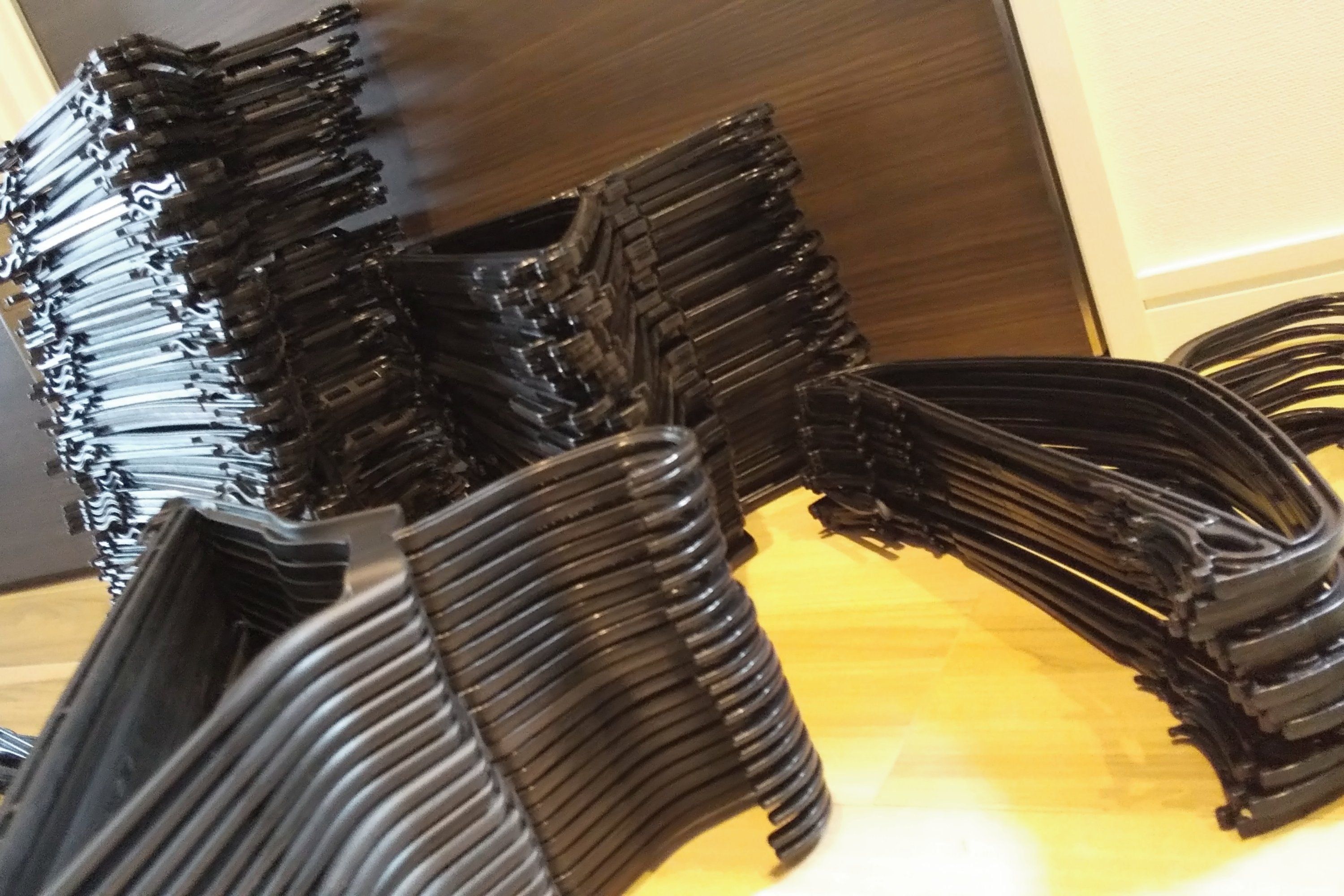このことから、ちゃんと自分の服を把握するためにも、洋服ダンスorクローゼットどちらかに統一して管理するのが、服を増やし過ぎない方法だと感じました。無料でもらえるクリーニング店のハンガーですが、使うばかりでなく、こまめに数を調整して、ちょうどよい服の量を管理することをおすすめします。(最終的には、各クリーニング店へ返却しにまわりましたとさ。)