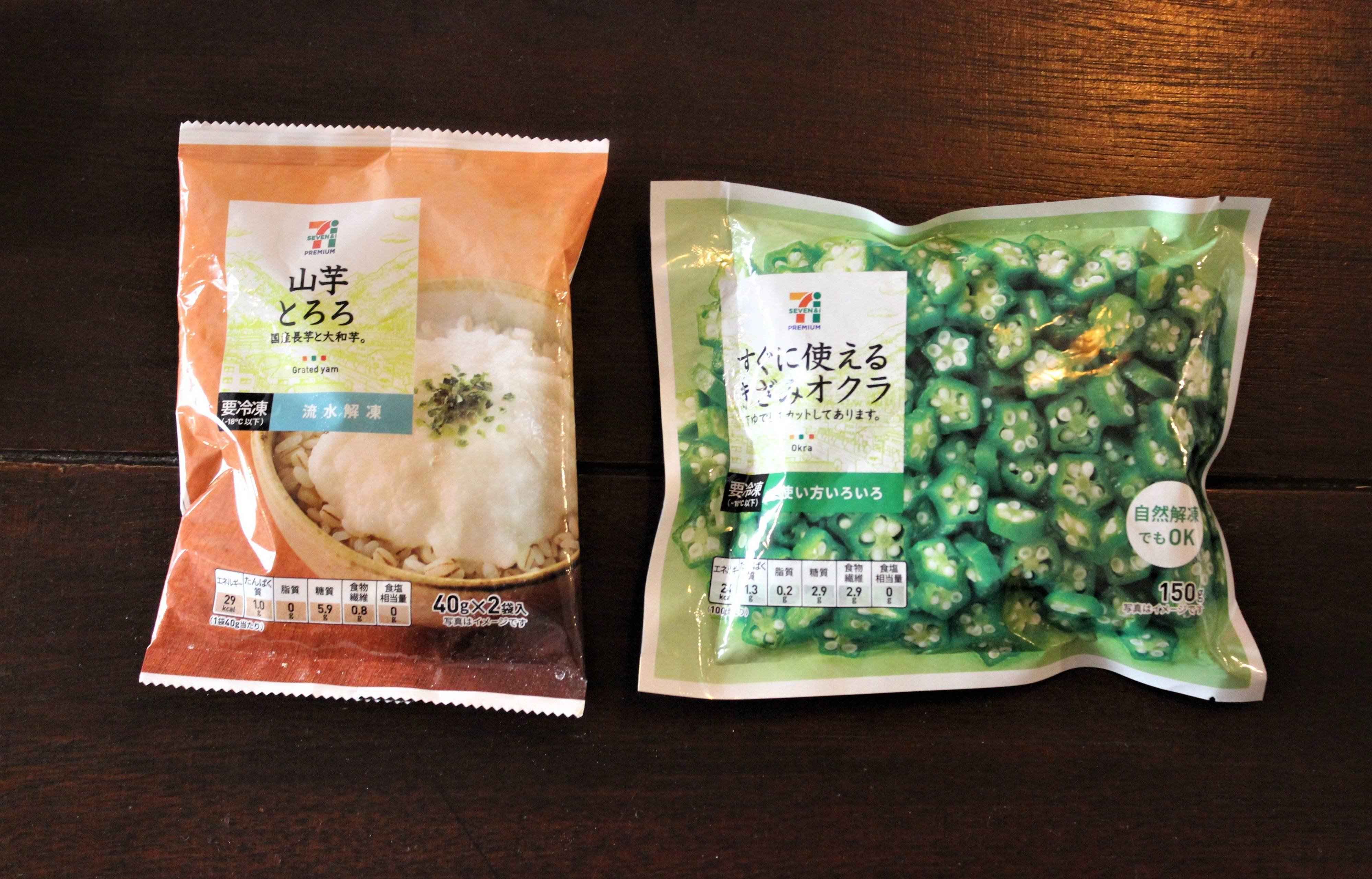 今日はこちらの冷凍野菜を使いました。夫が仕事帰りに「何かの役にたつかもしれないから~」と買ってきたもの。山芋とろろが40g×2袋で148円(税込)。きざみオクラが150gで116円(税込)。どちらも流水解凍&自然解凍OKなので、とっても簡単に使えました。
