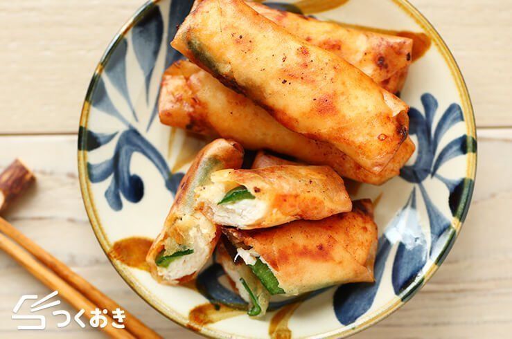 きゅうりを大量に食べて飽きてしまった!きゅうりをきゅうりとして食べたくない!というかたには「ささみときゅうりのミニ春巻き」がおすすめです。ささみの春巻きにきゅうりが加わることでこってりしがちな春巻きをさっぱりと食べられる1品になっています。