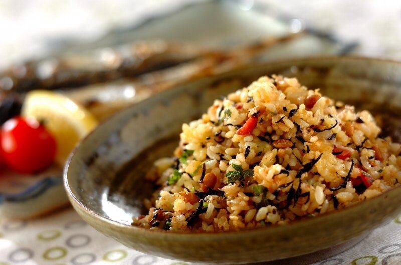 鉄分が足りないかたにおすすめなのが、ひじきと納豆のチャーハンです。梅が入っているので、夏のような汗をかく季節でもさっぱりと食べることができます。