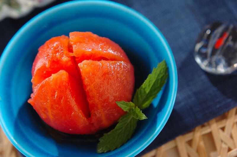 「デザートトマト」はトマトにハチミツを合わせて、フルーツのような甘さに仕上げています。食後のデザートや夏のおやつにおすすめのレシピですよ。