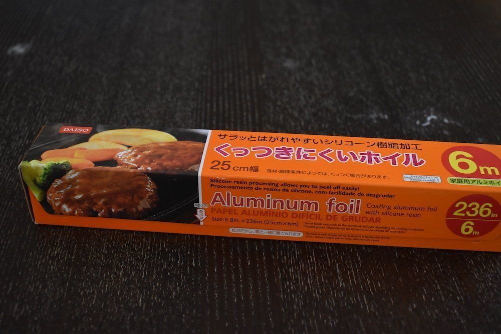 どうしてもフライパンを買い替える予算がたりない場合は、くっつきにくいアルミホイルなどを使用するのもおすすめです。100均などでも売っています!