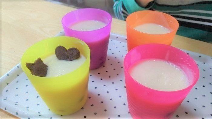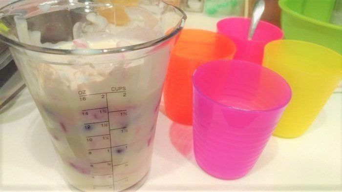 3.カップの八分目くらいまで入れて冷凍庫に3時間くらい入れて凍らせる。