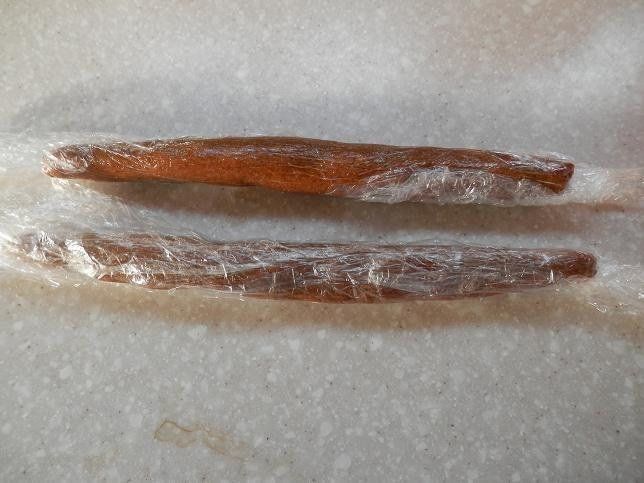 ラップにくるんで細長くのばし、冷蔵庫で30分以上冷やします。