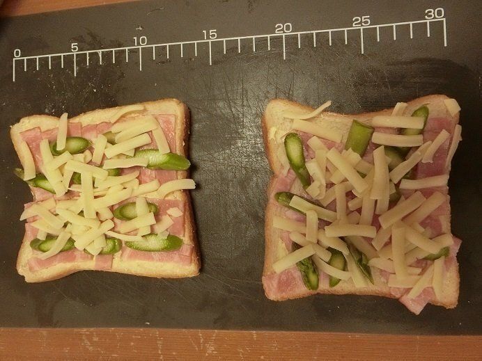 バターの代わりにマヨネーズやケチャップを塗ってもOK。具材の上にピザ用チーズを乗せたり、マヨネーズを乗せてもいいです。