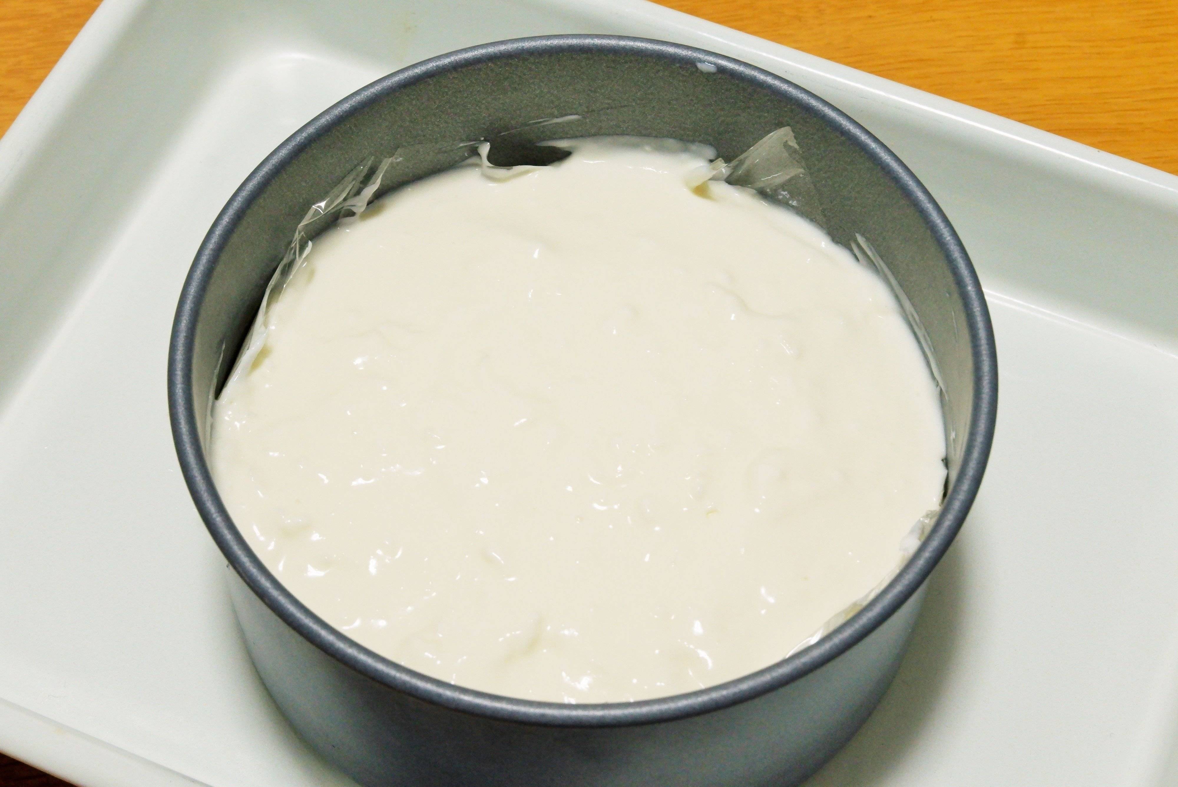 ビスケット生地の上に流し込み、再度冷蔵庫で30分冷やし固める。