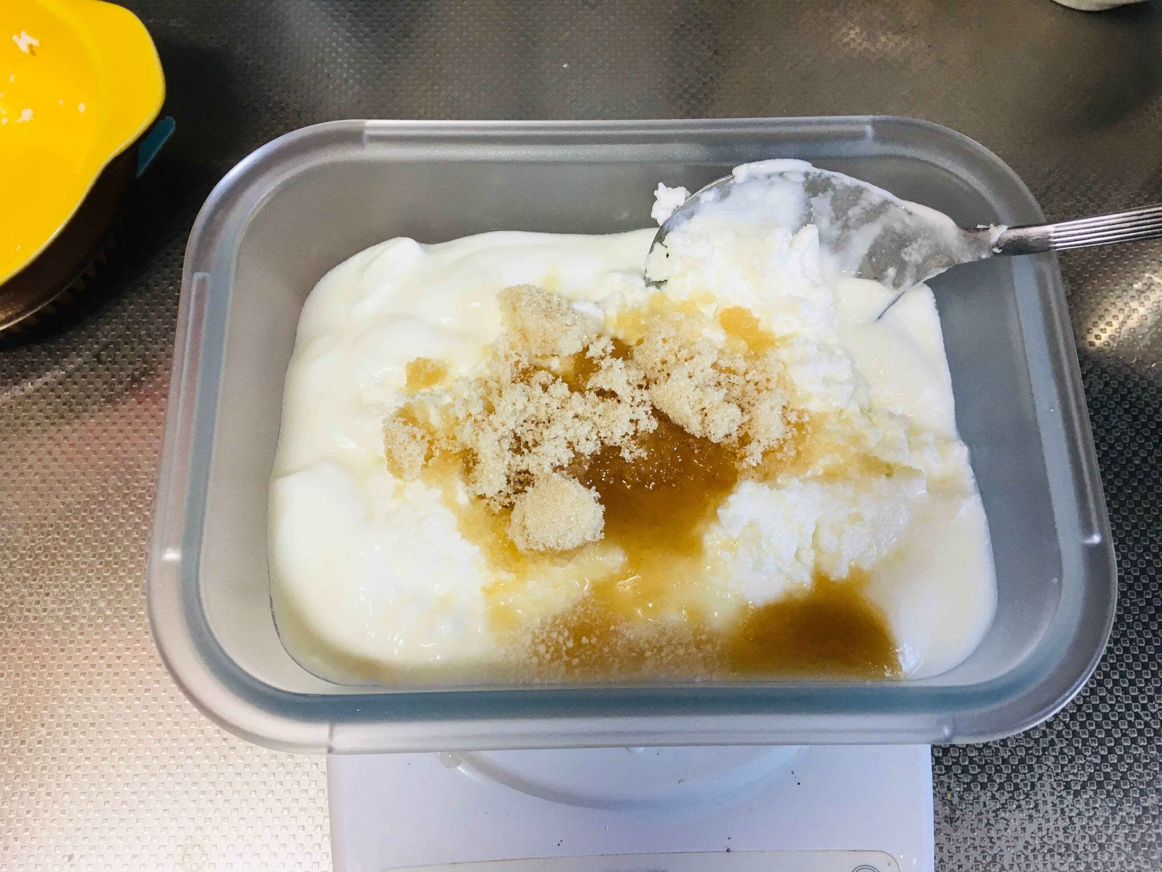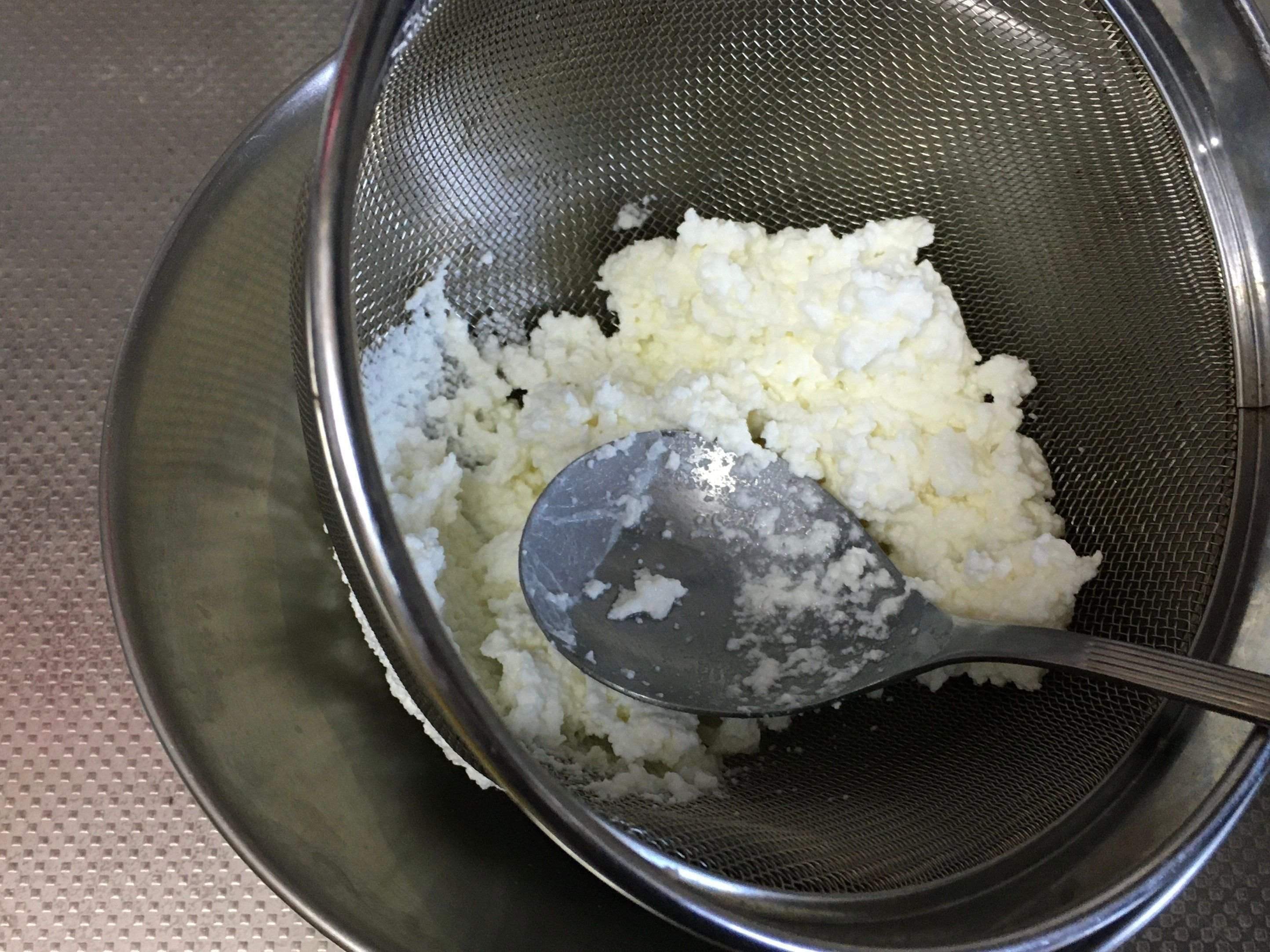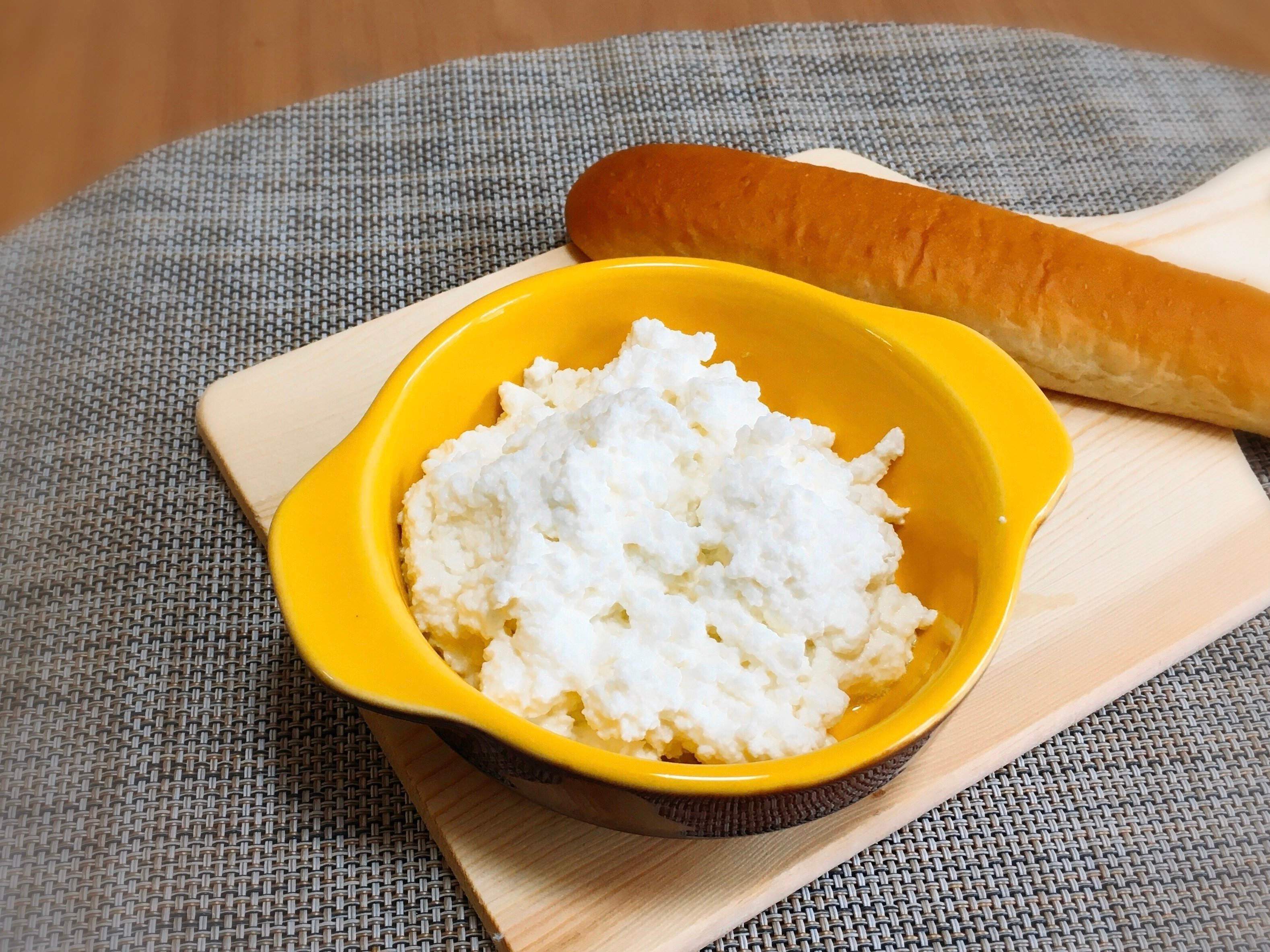 大人はできあがりに塩を少々混ぜると、おいしく感じると思います。クラッカーと食べても、サラダに盛りつけてもおいしいです。このカッテージチーズを使って、ケーキをつくります。