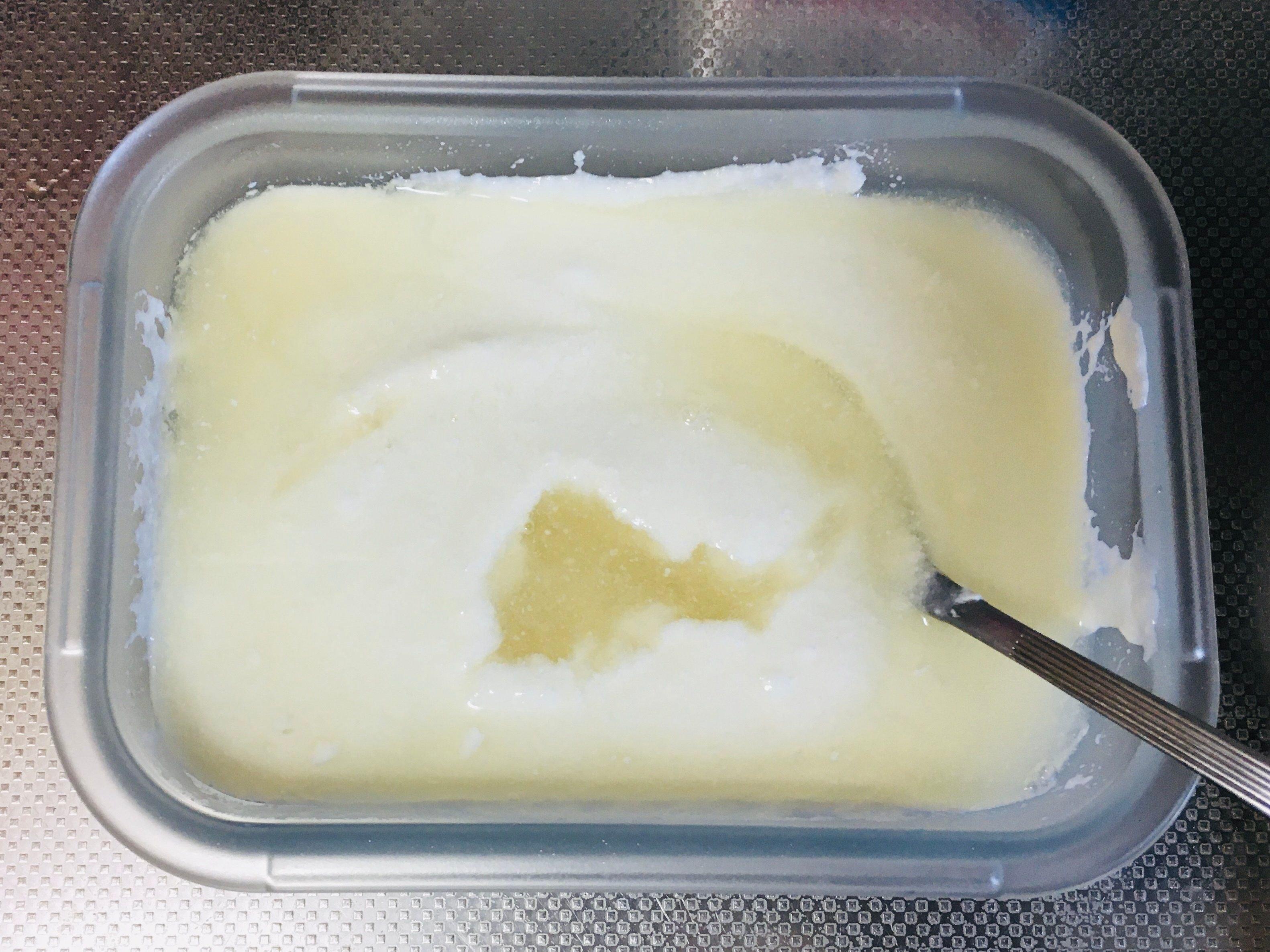 3.ゼラチンはぬるま湯50mlで溶いて、2としっかり混ぜる。