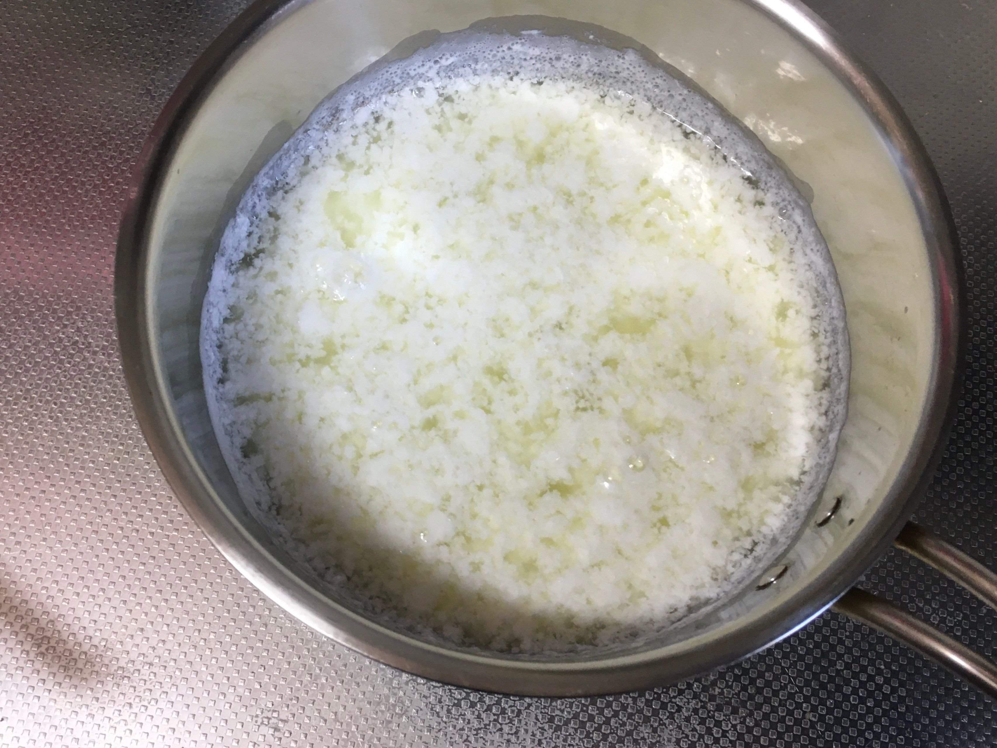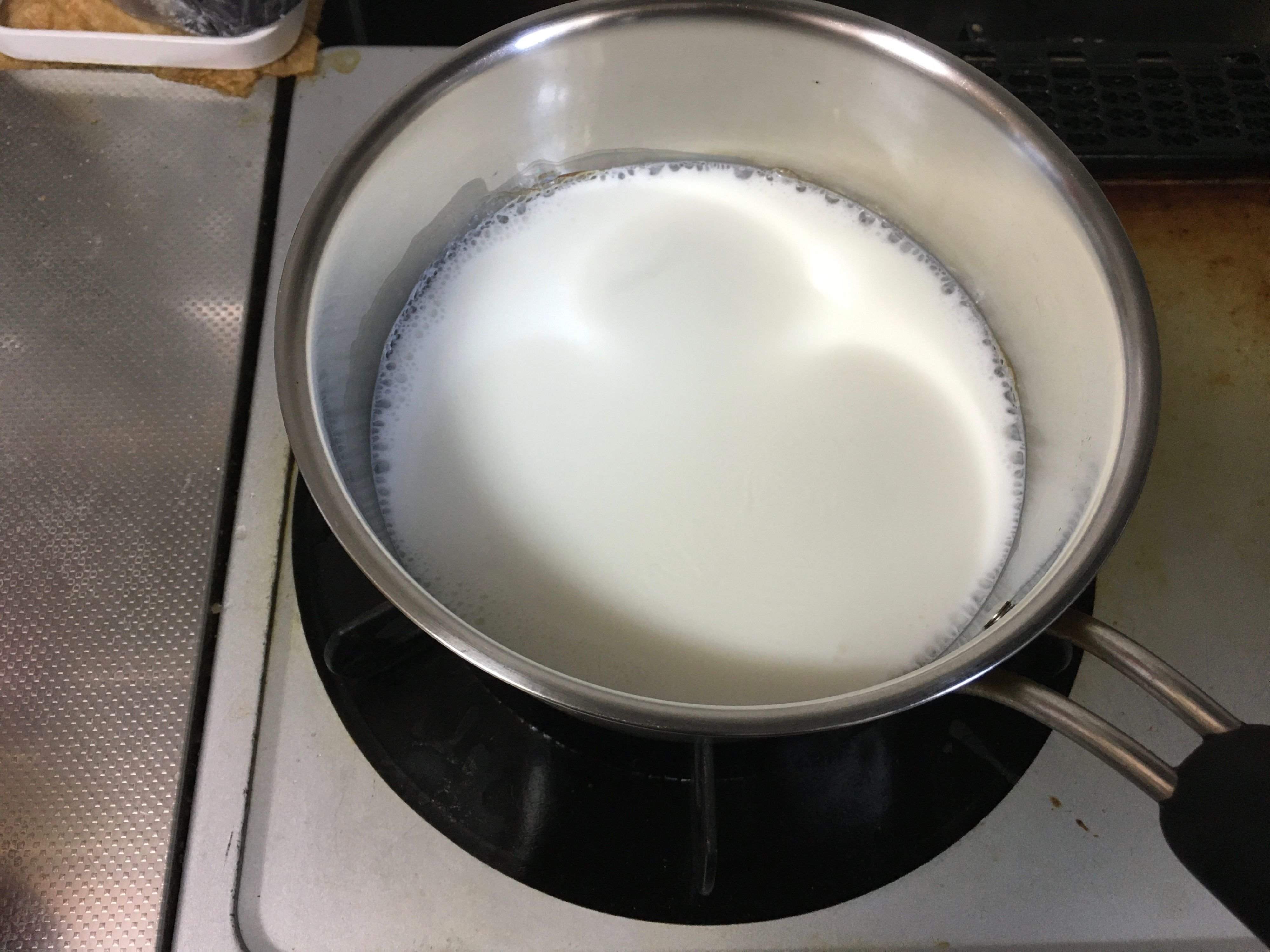 2.牛乳を60度ほどに温める。まわりがふつふつするくらい。