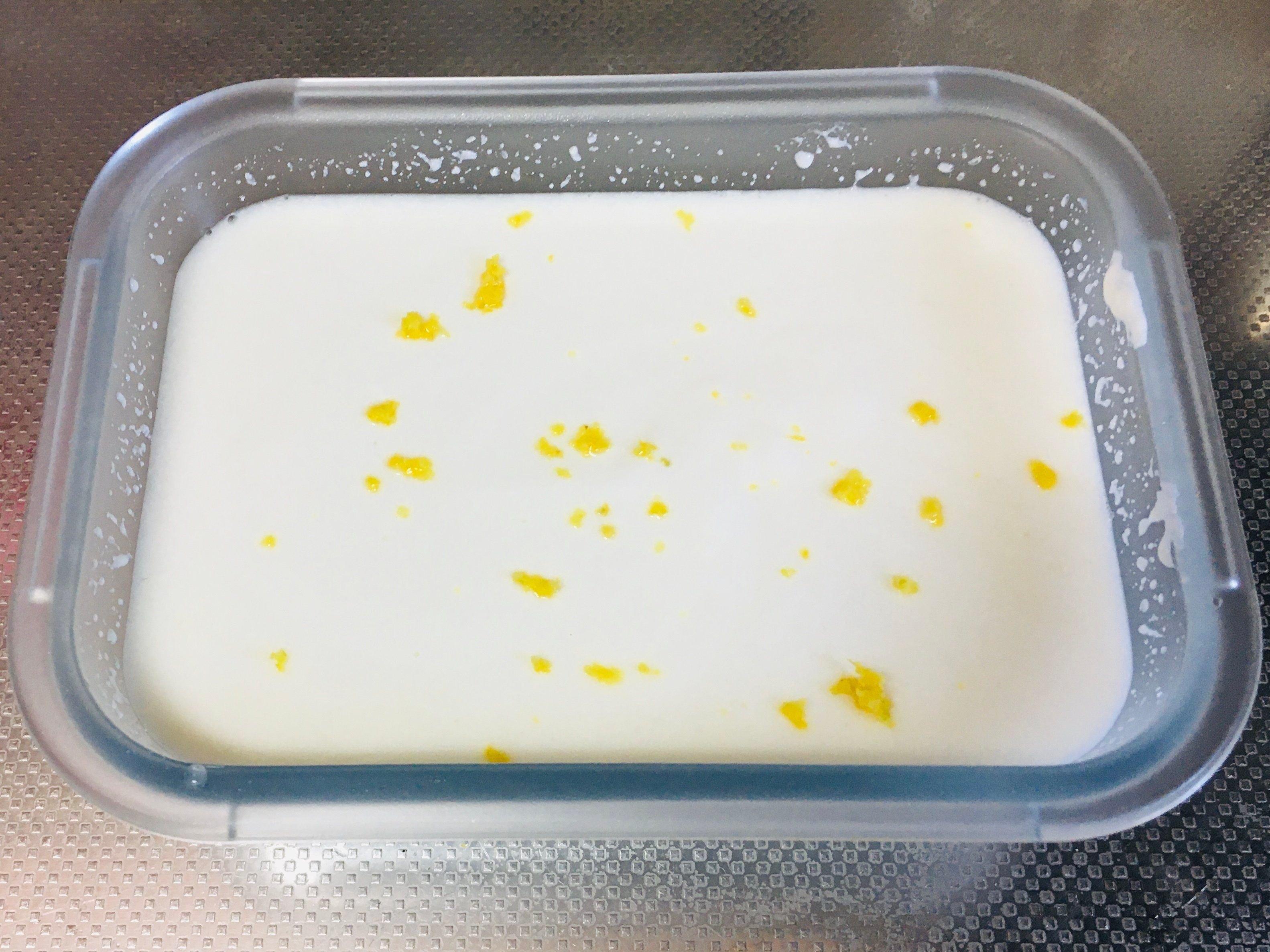 カッテージチーズは手づくりのものを使いましたが、市販のものでもOKです。私は冷やす前に、レモンの皮のすりおろしをまぶしかけました。