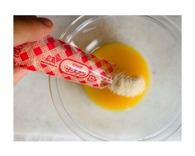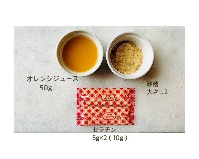 1.オレンジジュースにゼラチンを加える。