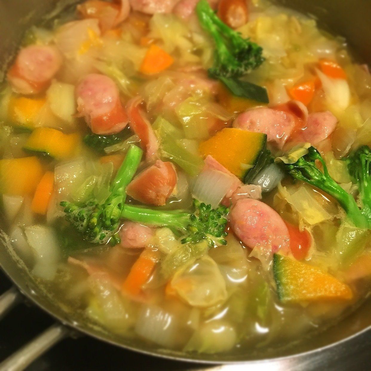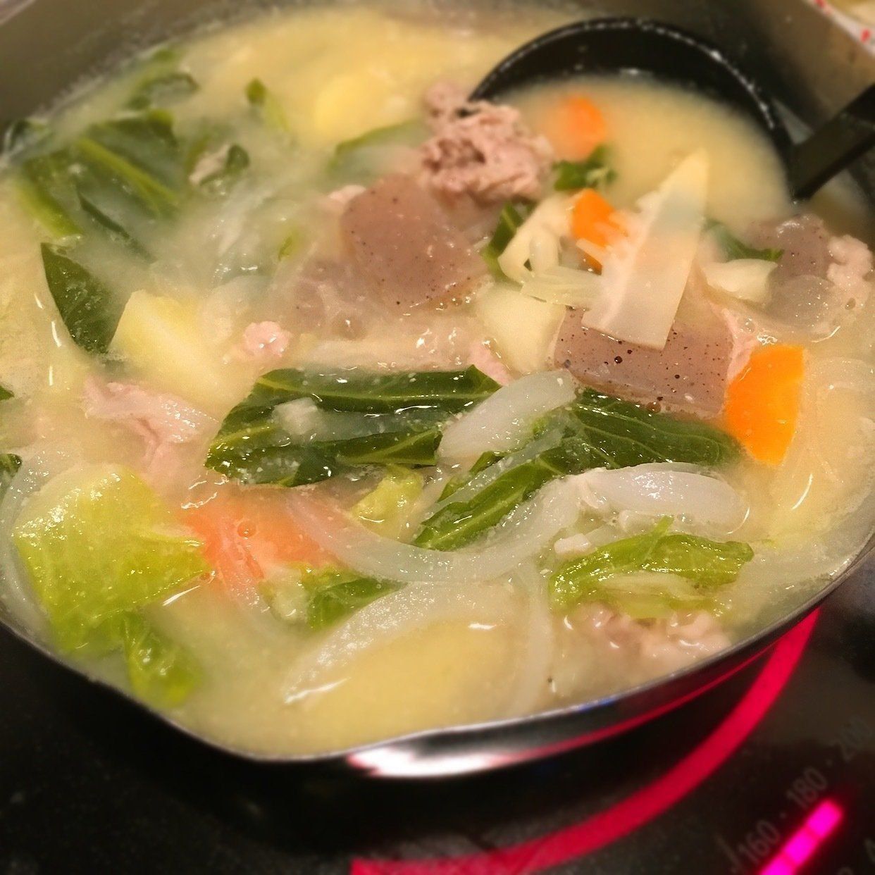 冷蔵庫にあるものとタンパク質を組み合わせれば、ボリュームある汁物で満足できるおいしさだと思います。たっぷりの野菜と肉の出汁でだし取りいらず、みそだけでも十分です。