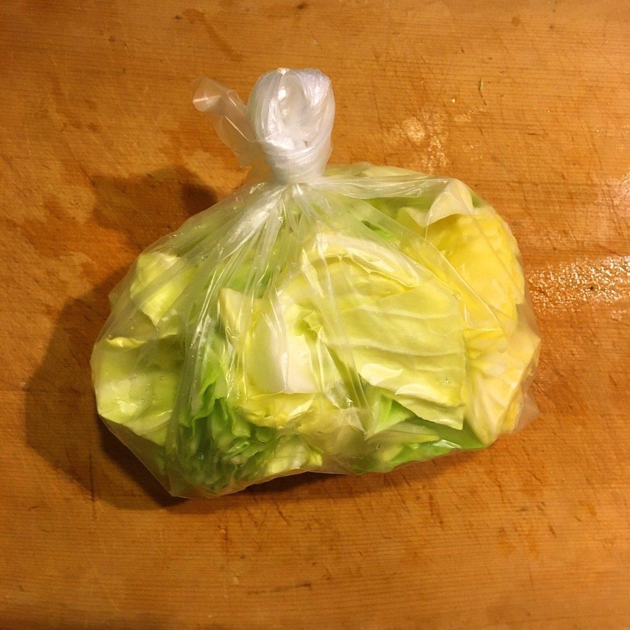1/4玉ずつポリ袋に入れて冷蔵庫で保存。これで3~4日は綺麗な状態で保存できます。