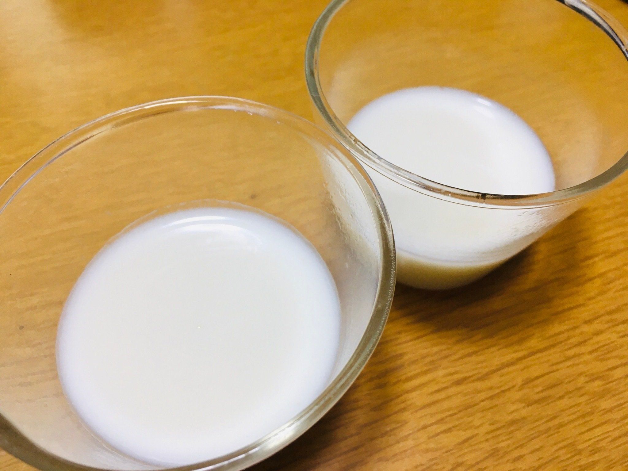 ふやかしたゼラチン小さじ1/2を少しずつかき混ぜながら流し入れ、カップに入れる。