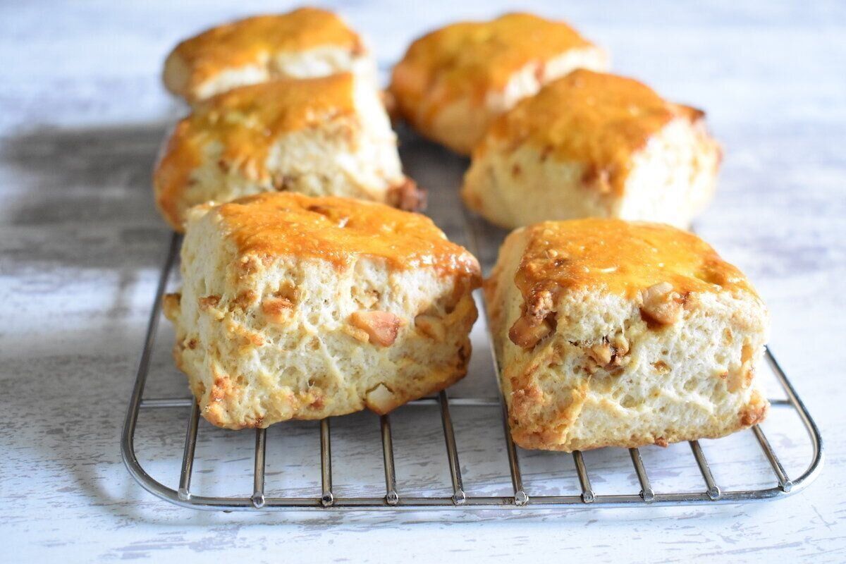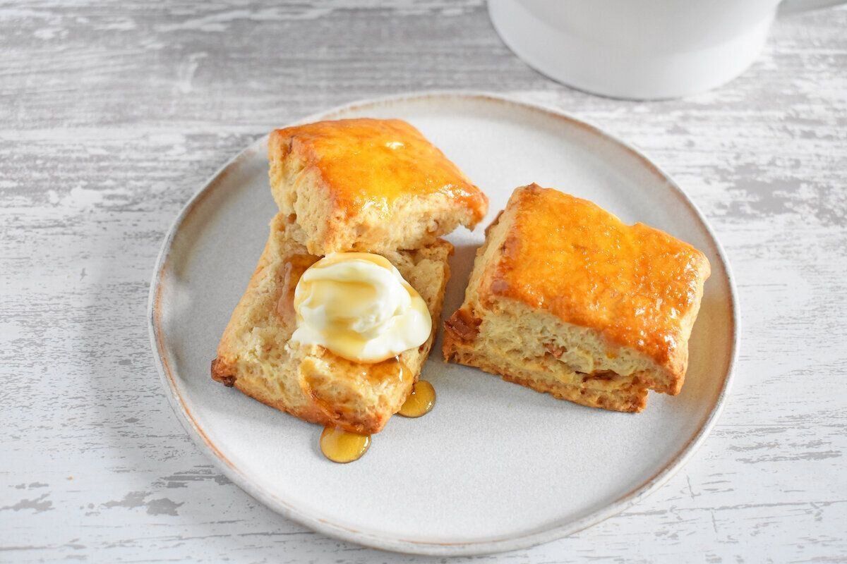 今回はスコーンの準備と片づけをできるだけ簡略化する方法をメインに紹介しました。強力粉、全粒粉を使ってまわりはザクッとサクッとの中間。メープルシロップでキャラメリゼして刻んだマカダミアナッツを加えたスコーンです。