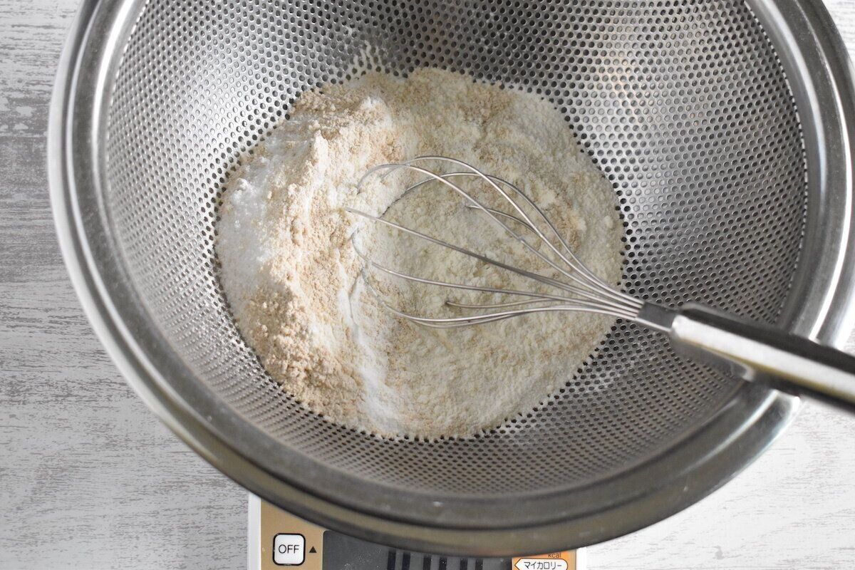 ここで粉類を混ぜておくと、効率よく混ざります。