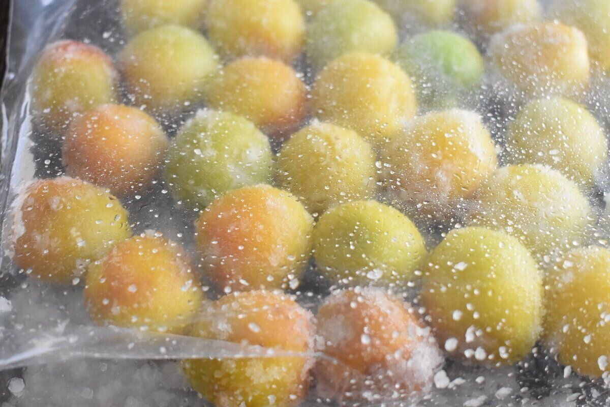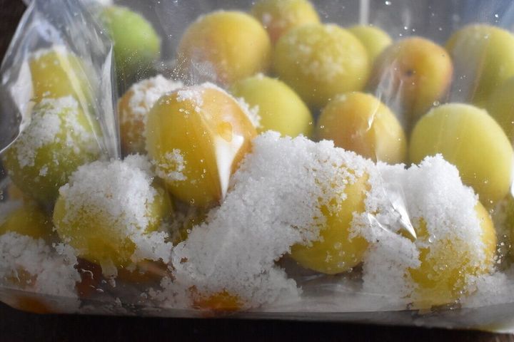 清潔な密閉袋に梅を入れます。