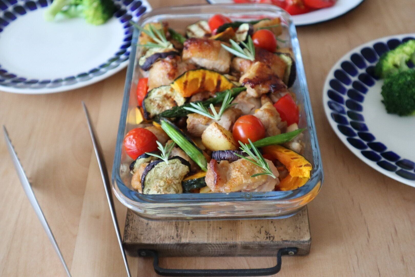 3.野菜を鶏肉の周りの空いているところや、グリルで軽く焼く