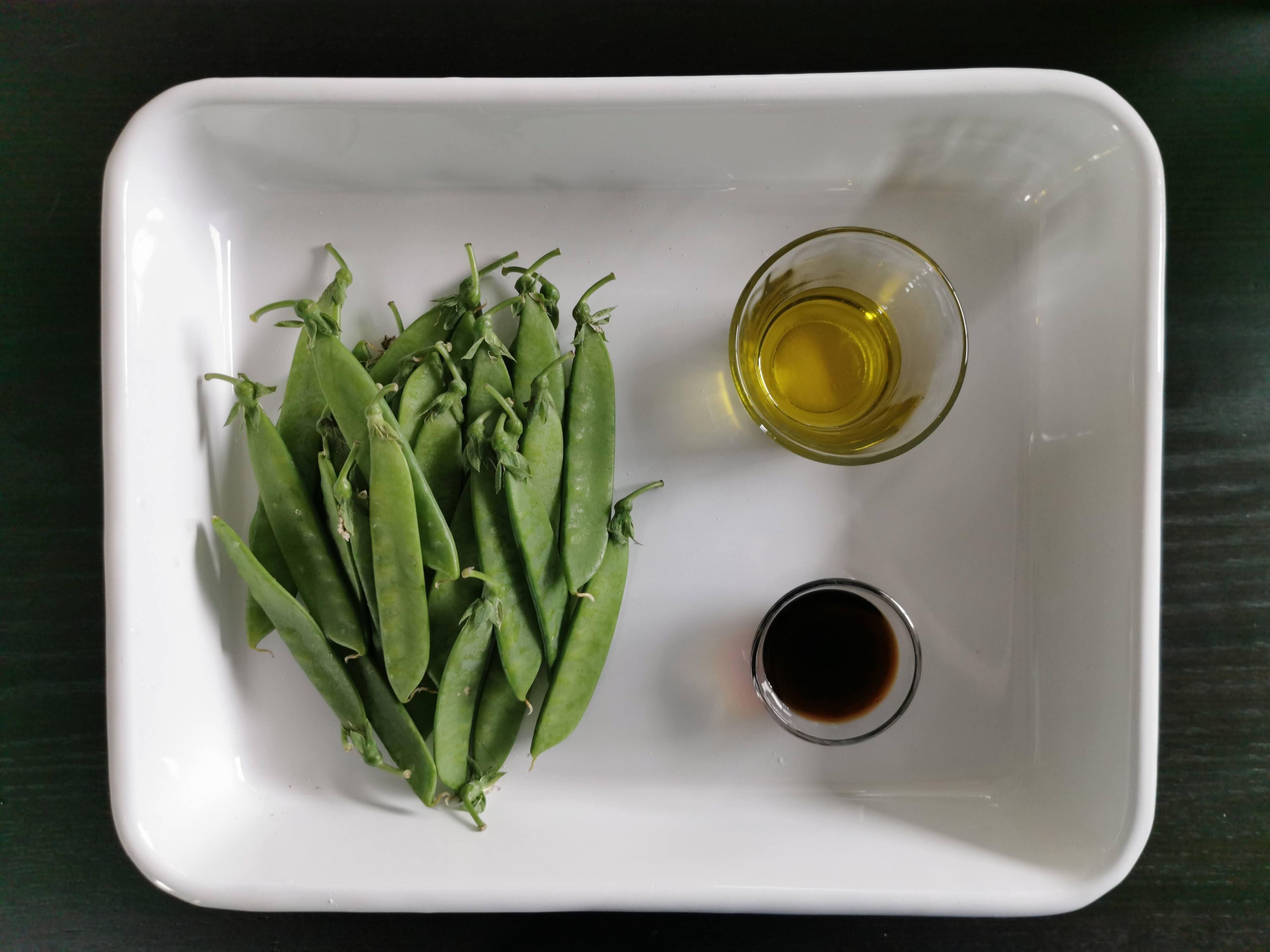(1)絹さやのヘタと筋をとる。
