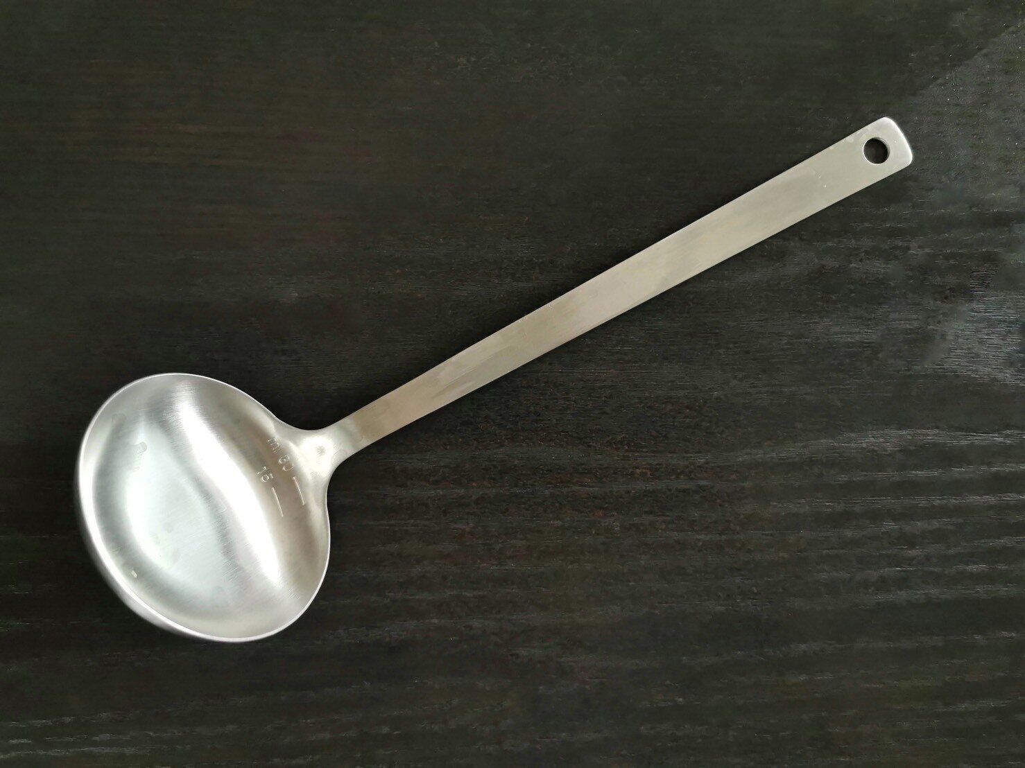 わが家も、もらいものの有名なキッチンブランドのお玉をなんとなく使い続けていたのですが、大きくて場所をとるし、使いづらいなぁと思って数年が経過。