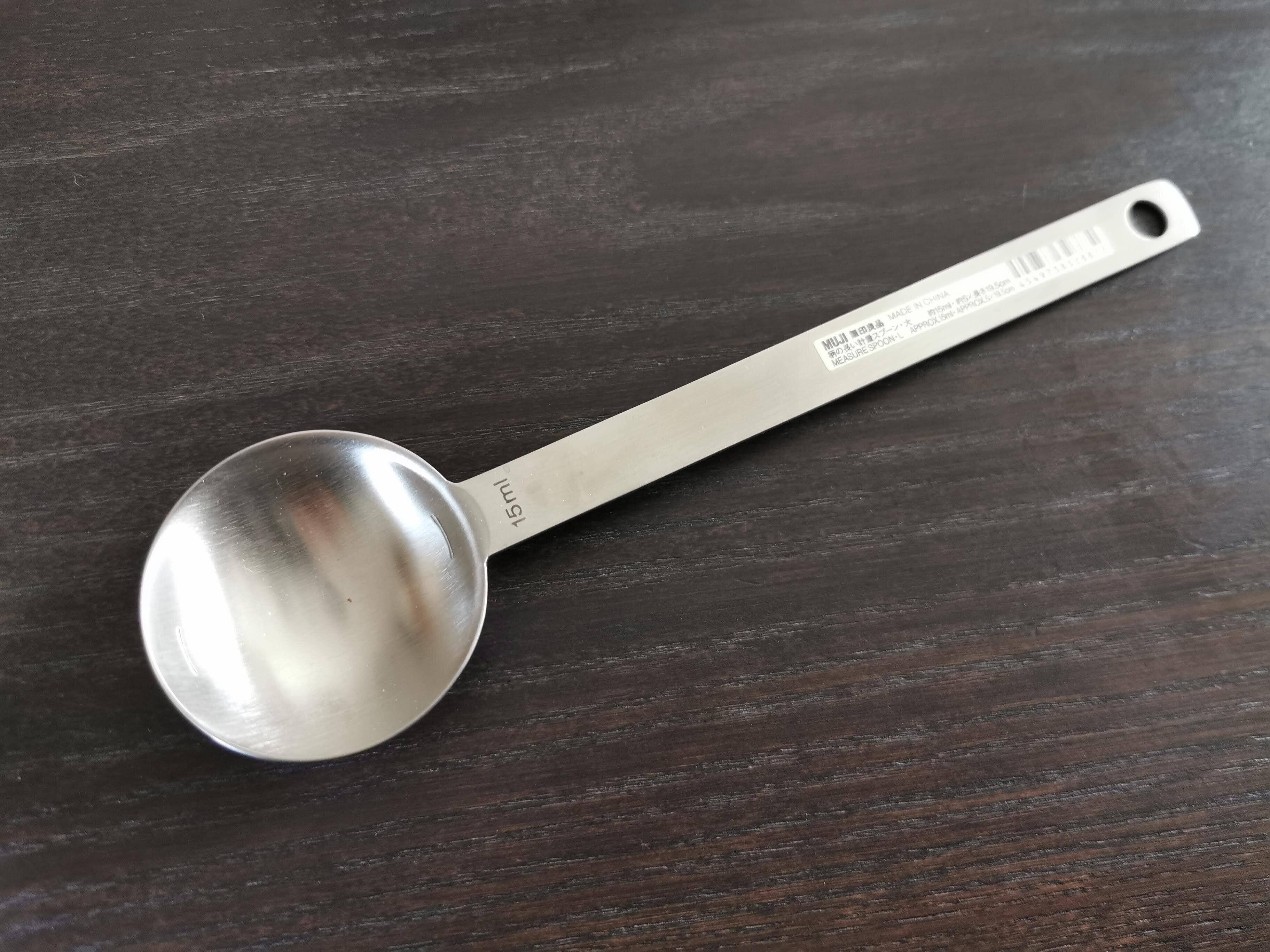 深いと浅い、その中間くらいの、絶妙なカーブを描いてくれているのが無印良品の計量スプーンなんです。