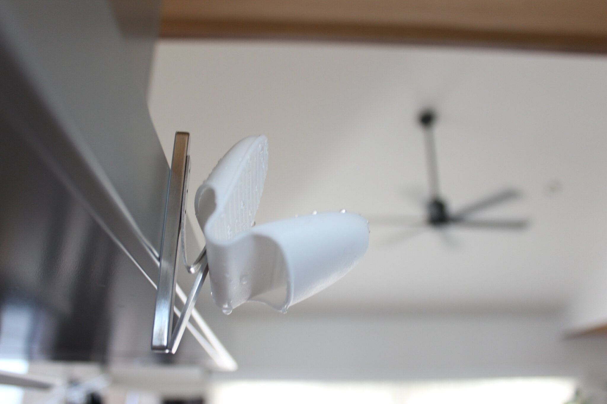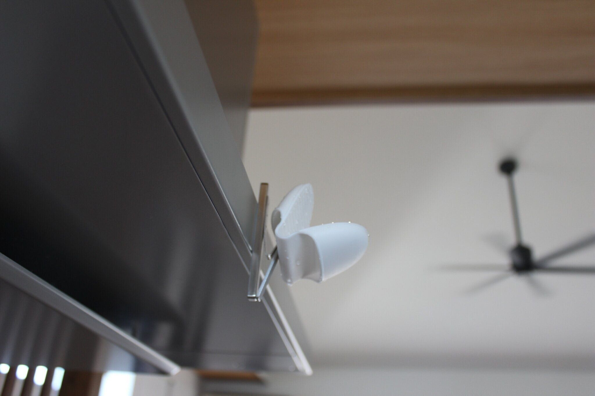 こちらをダイソーの積み重ねボックに掛けてキッチンスペースに置いています。