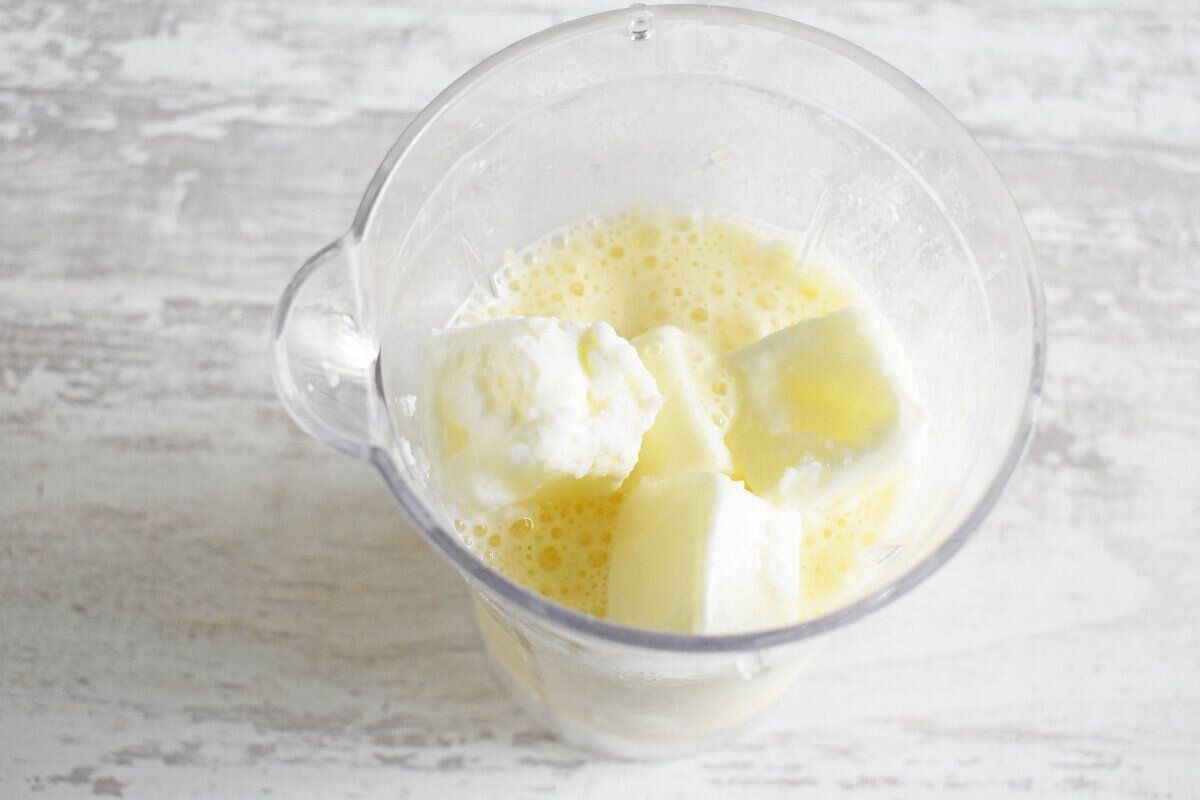 濃度高めのバナナジュースができたら砂糖を加えてさらに撹拌します。