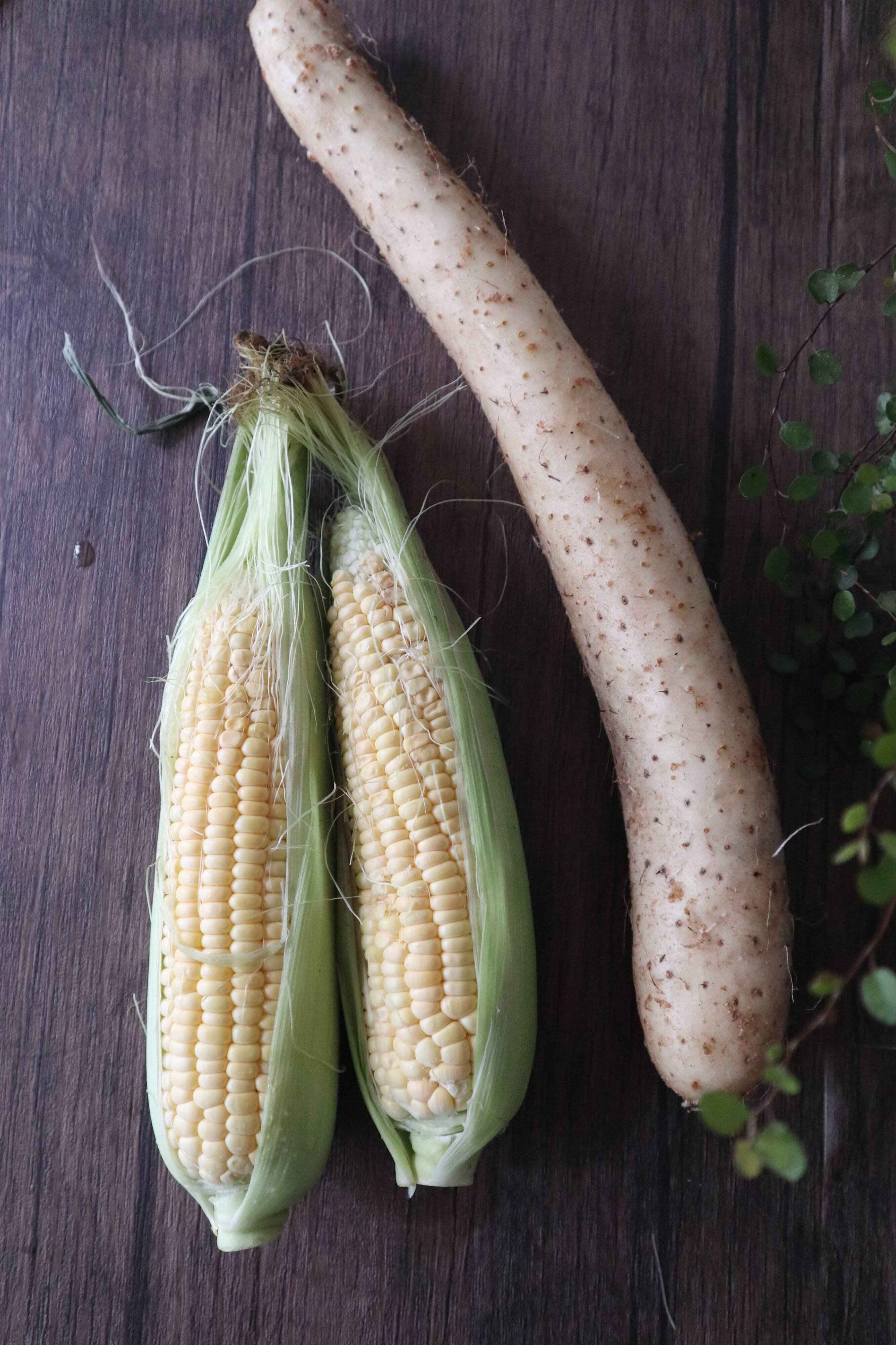 旬なとうもろこしを使ったカレー揚げと夏が旬ではないけど長芋の磯部揚げをつくります。