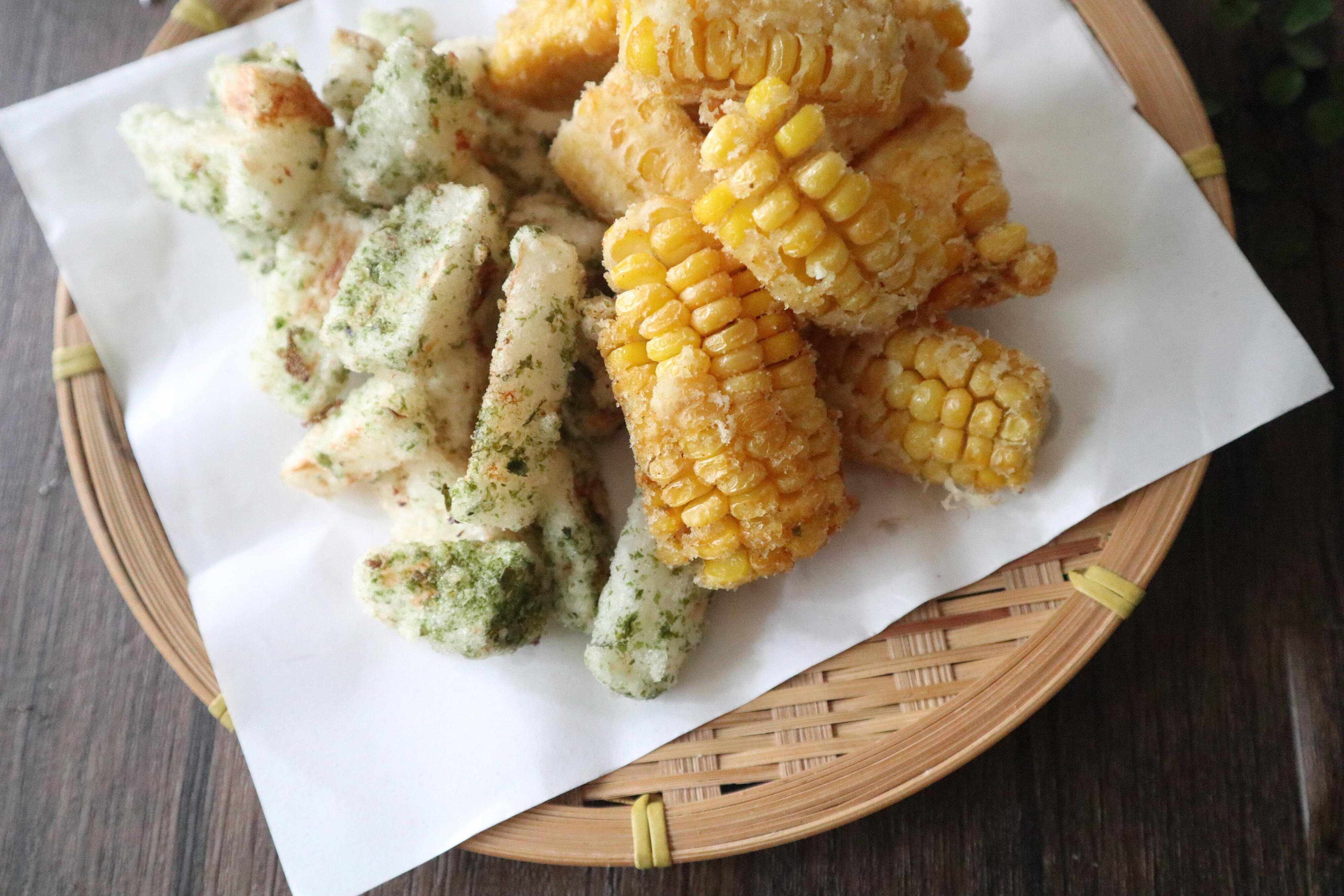 とうもろこしは揚げると甘みが増しますし、長芋は食感がホクホクになっておいしいです。