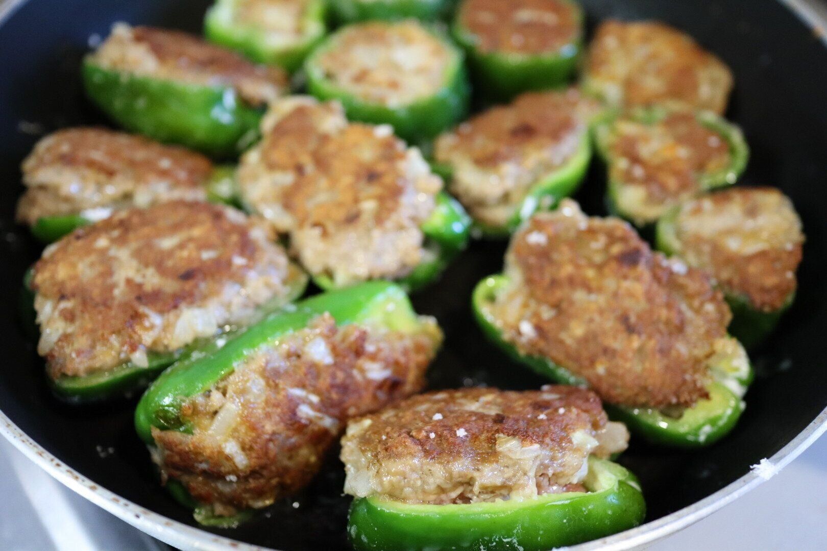 我が家はこの季節になると、週末夫とスーパーへ買い物に行くと必ずピーマンの大袋が、カゴに入っています。ピーマンの肉詰め目当てです。何度もくりかえしつくり、無駄を省いた、ワンボウル、フライパン1つ、子ども用、お弁当用までまとめてつくる簡単・時短レシピをご紹介します!