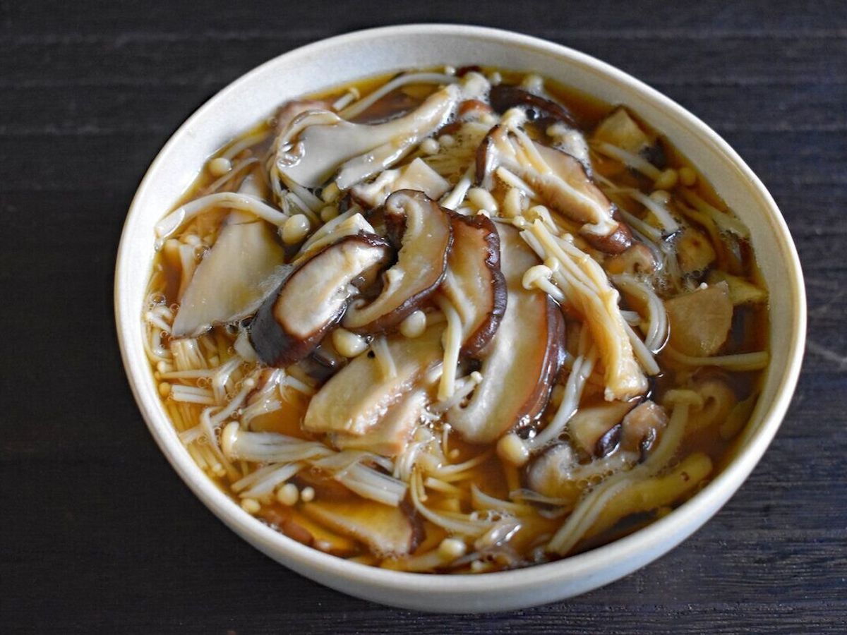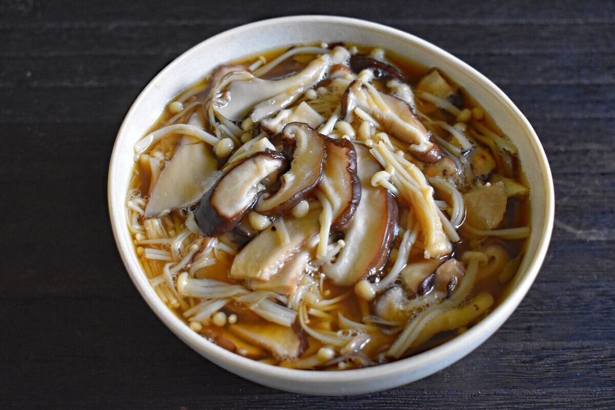 今回は、きのこ総量300g(小鉢3〜4杯分)の分量の煮汁の2種類の味つけを紹介します。