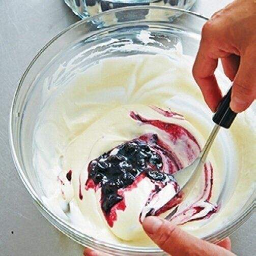 ジャムはクリームに加えてひと混ぜし、マーブル状にする。