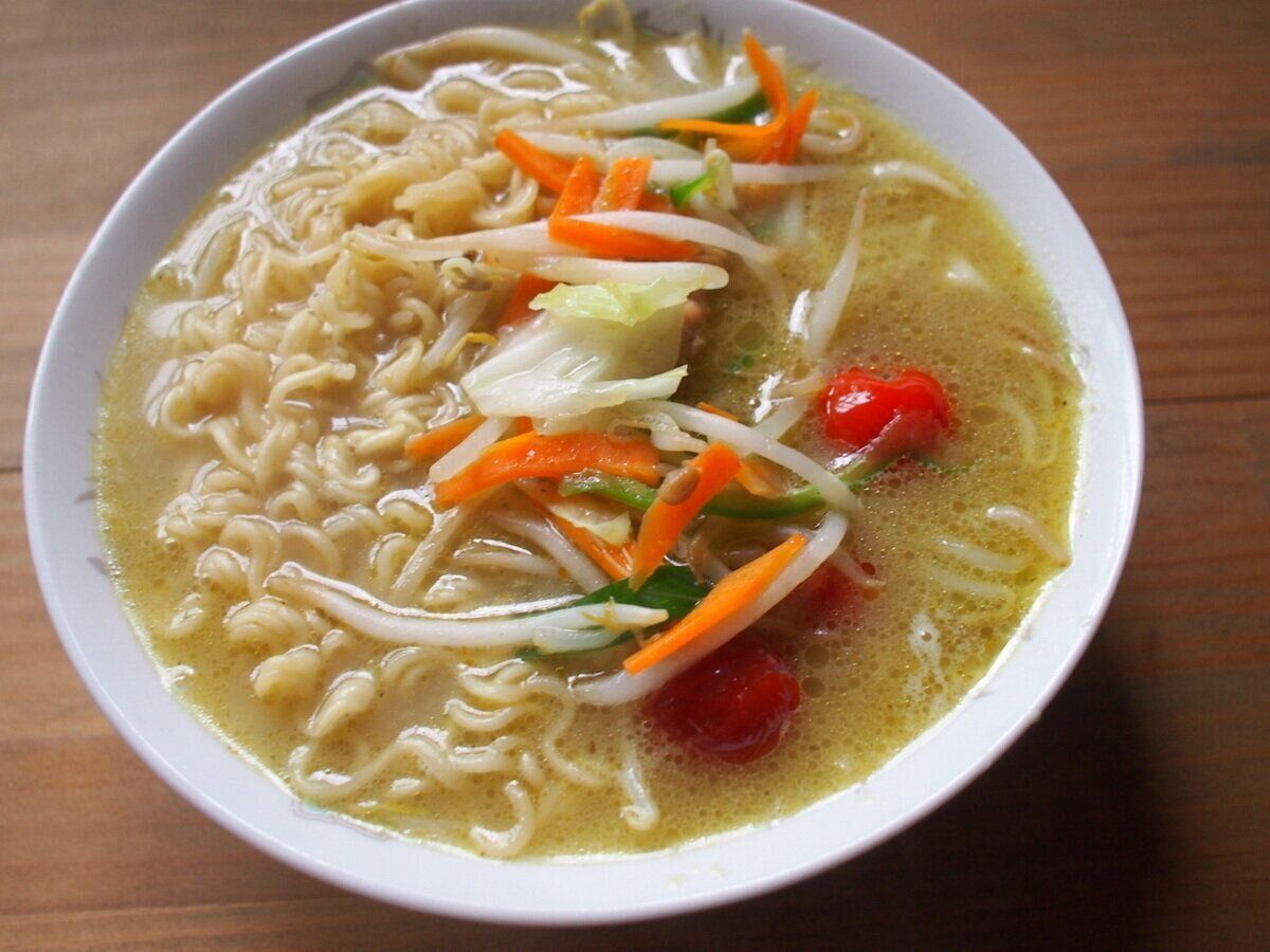 袋麺でつくる「グリーンカレーラーメン」