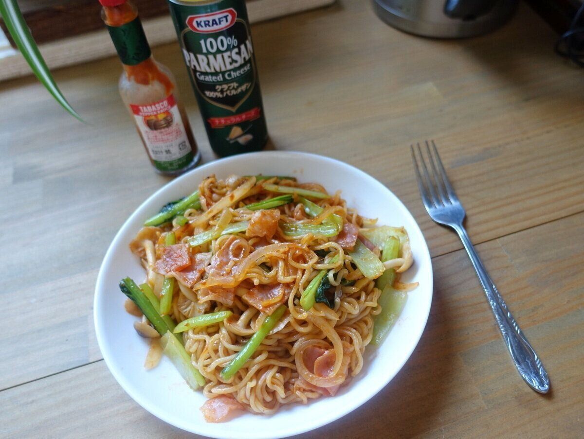 袋麺を混ぜてつくる「ナポリタン」