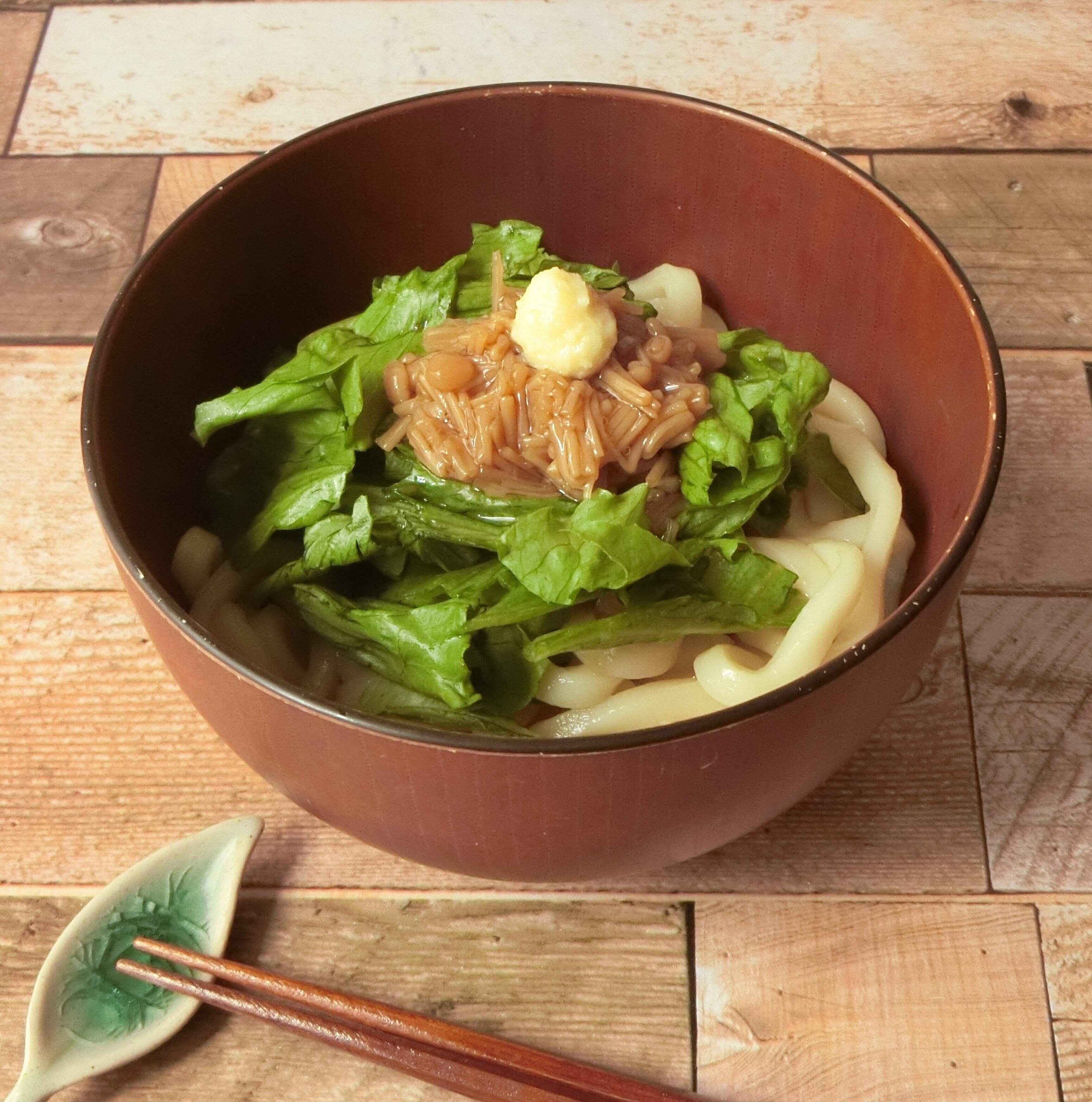 なめ茸とレタスの和えうどん