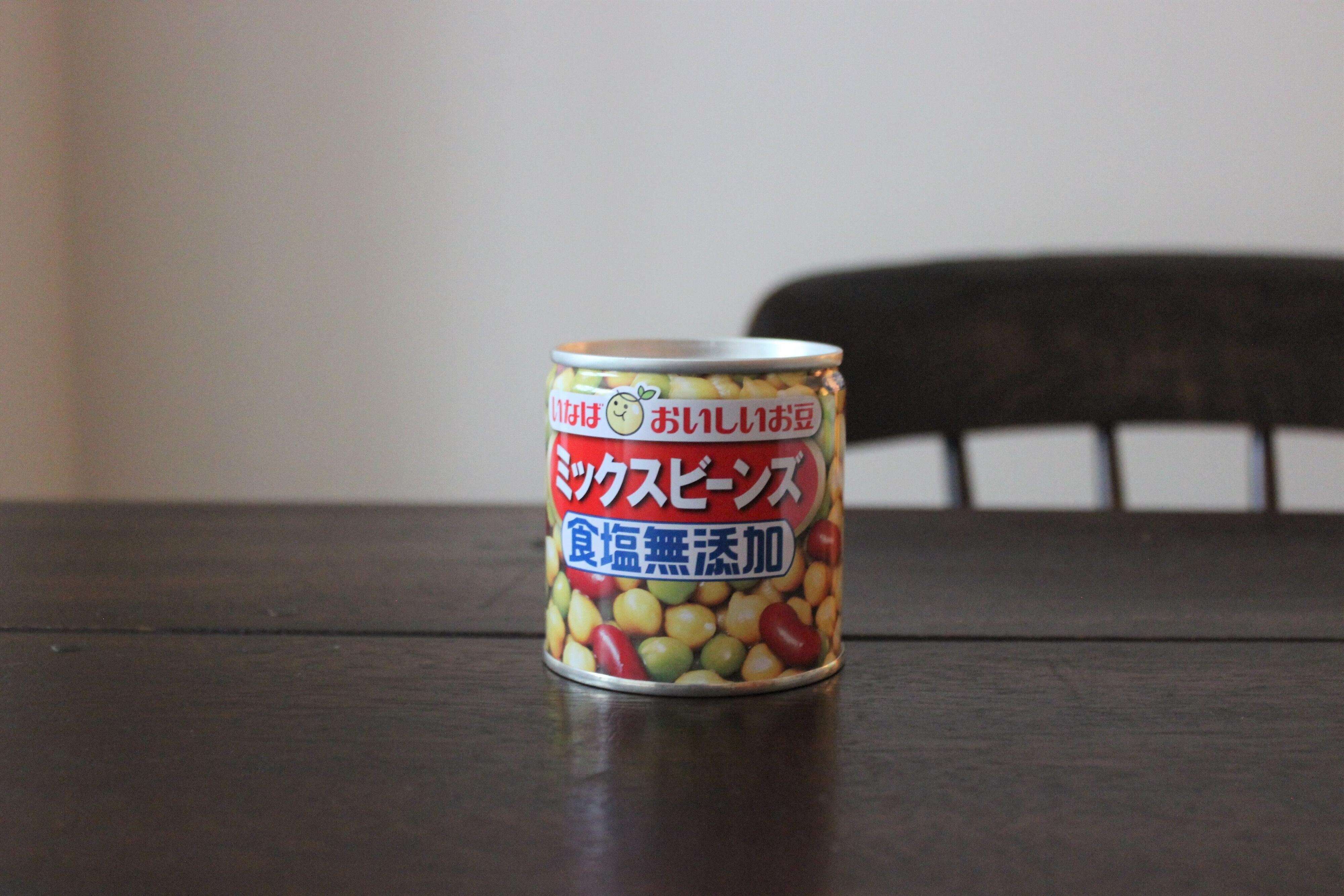 用意するのは、缶詰の豆。個人的にはひよこ豆がおすすめですが、ミックスビーンズでも。