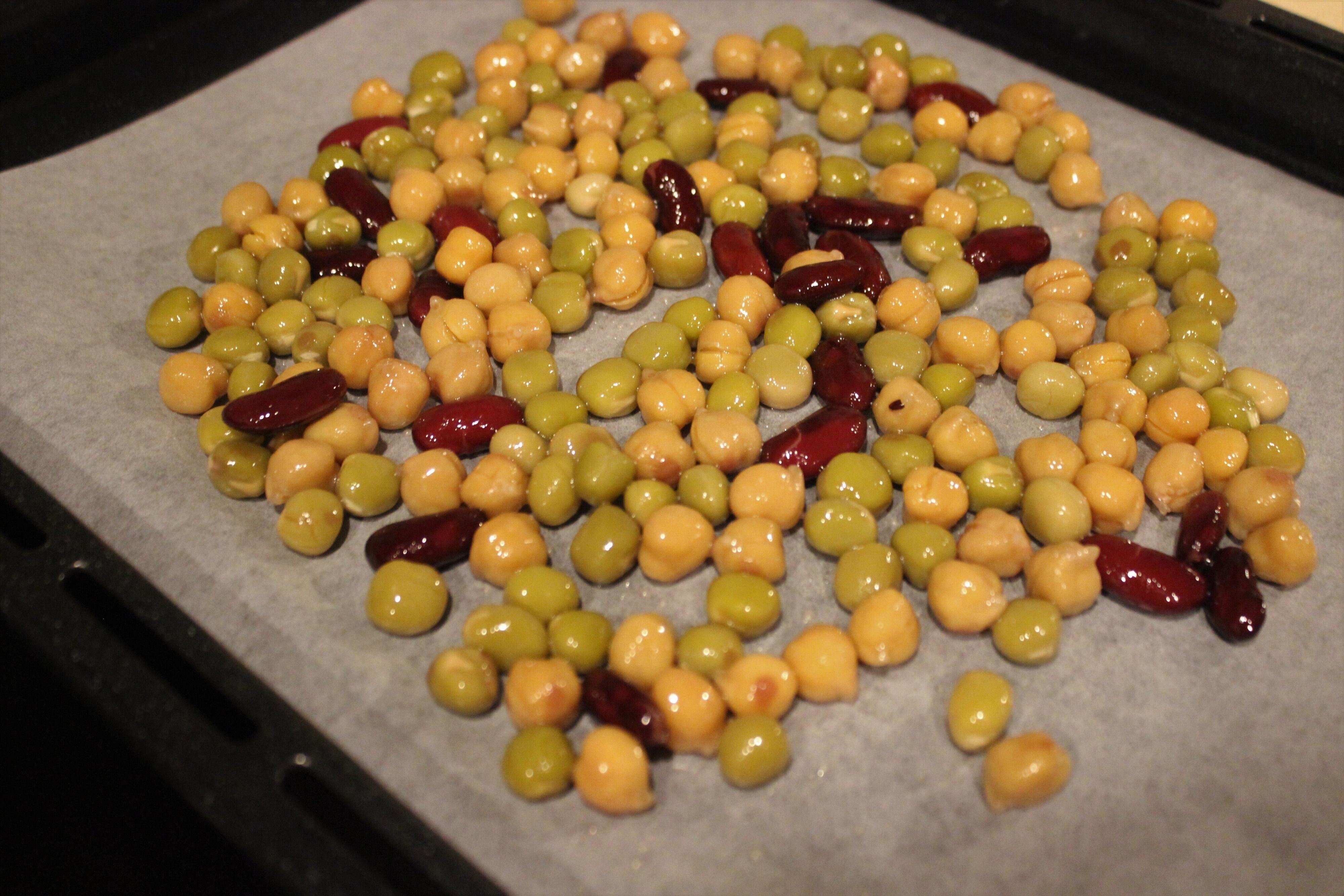 味付けをしたら、オーブンの天板にクッキングシートをしいて豆を広げ、200℃で20分~30分程加熱します。
