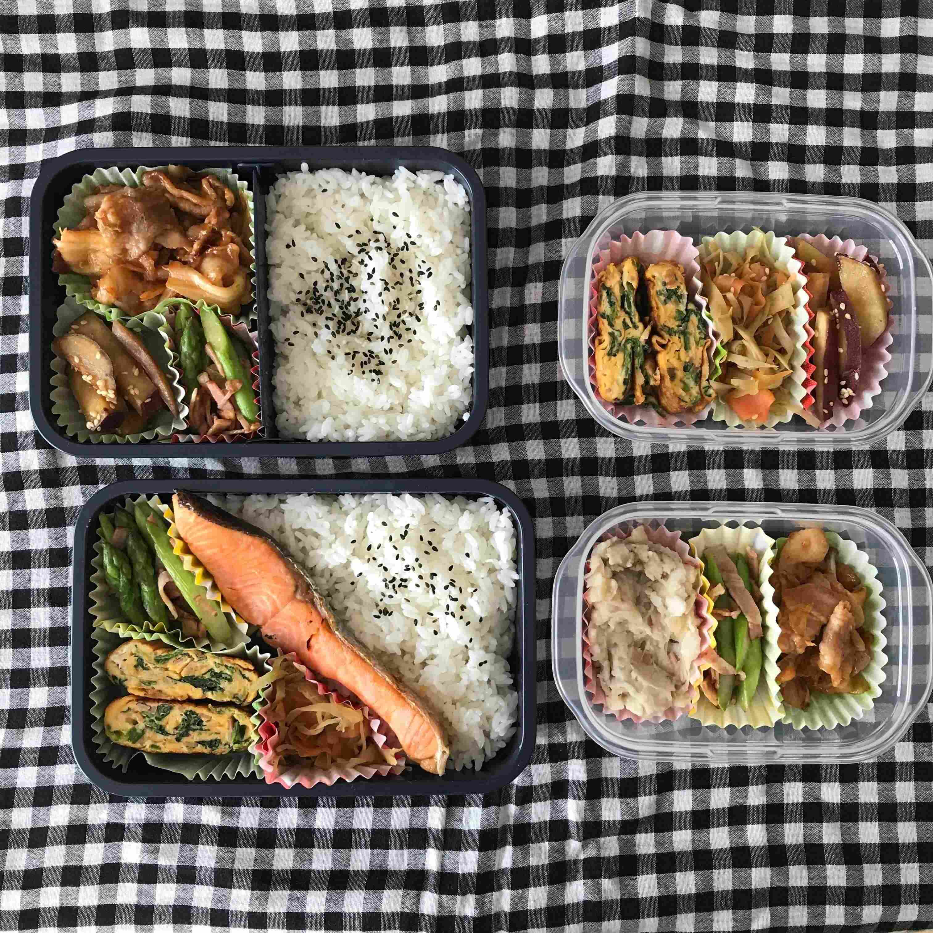 夫が1食を食べやすいようにご飯と複数のおかずをまとめる「お弁当スタイル」です!お弁当箱におかずをどんどん詰める作業、めちゃくちゃ楽しかったですよ。お弁当屋さんになったような気分になりました!おかずもたくさん作って自宅用にも冷凍ストックができたので、お弁当作りをがんばったあとは思いっきりラクできました。