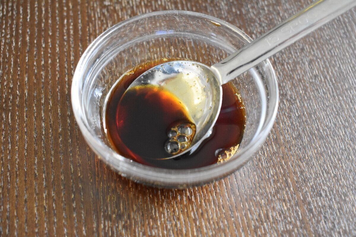 照り焼き系の味つけで定番のみりん、酒も試しましたが、今回はパンチのきいた山椒風味があるので、入れなくても問題ないと思います。