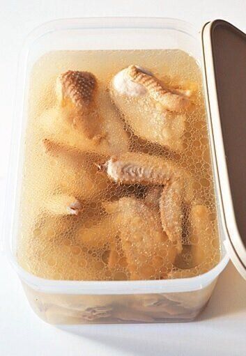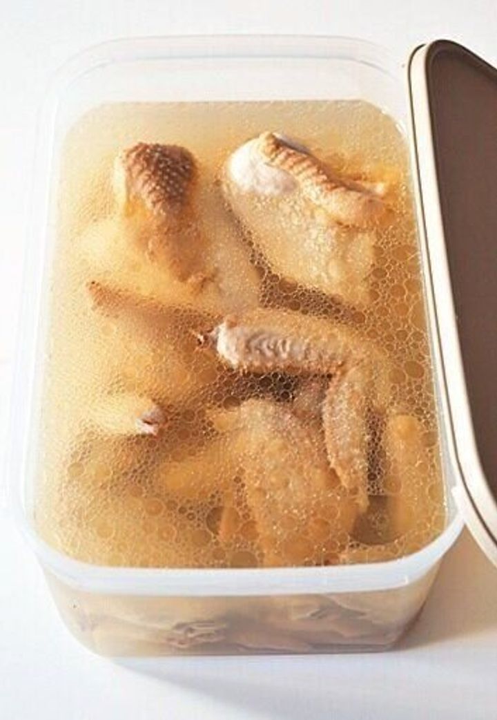 手羽先には、裏から骨にそって切り込みを入れる。鍋に湯を沸かし、手羽先を入れてさっとゆでる。再び湯が沸騰したら手羽先を取り出し、ゆで汁を捨てる。