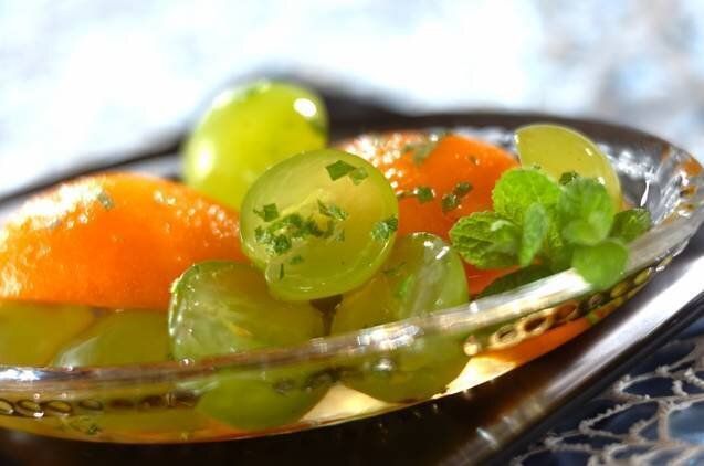 びわのおすすめレシピ2:ビワとマスカットの白ワインとミントの香り