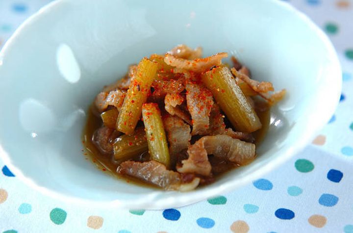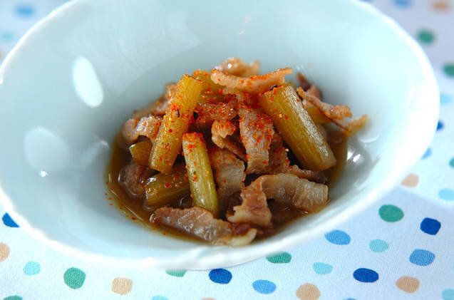 ふきの苦みと豚バラ肉がよく合うレシピです。