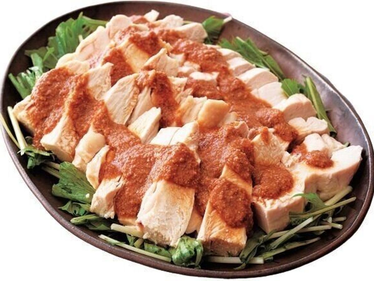 『サンキュ!』2020年9月号の「15分殿堂入り夕ご飯」よりレンジ蒸し鶏のごまみそだれをご紹介します。