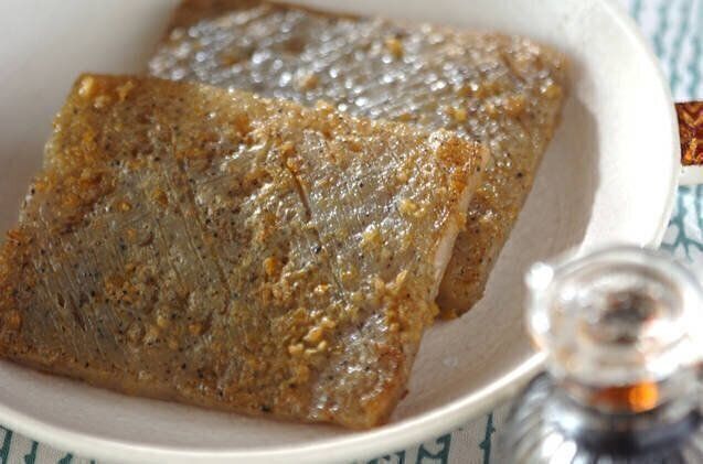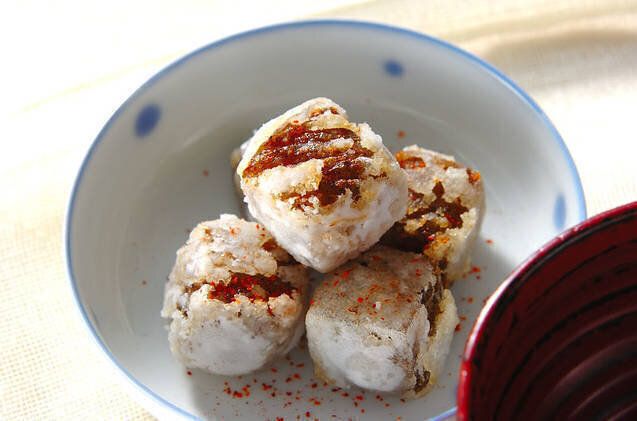 煮物や炒め物が定番のこんにゃくを、カラッと揚げた風変わりな一品。弾力のあるこんにゃくと、サクサクとした衣のハーモニーが新鮮です。仕上げに一味唐辛子をふって、辛味をプラスしましょう。
