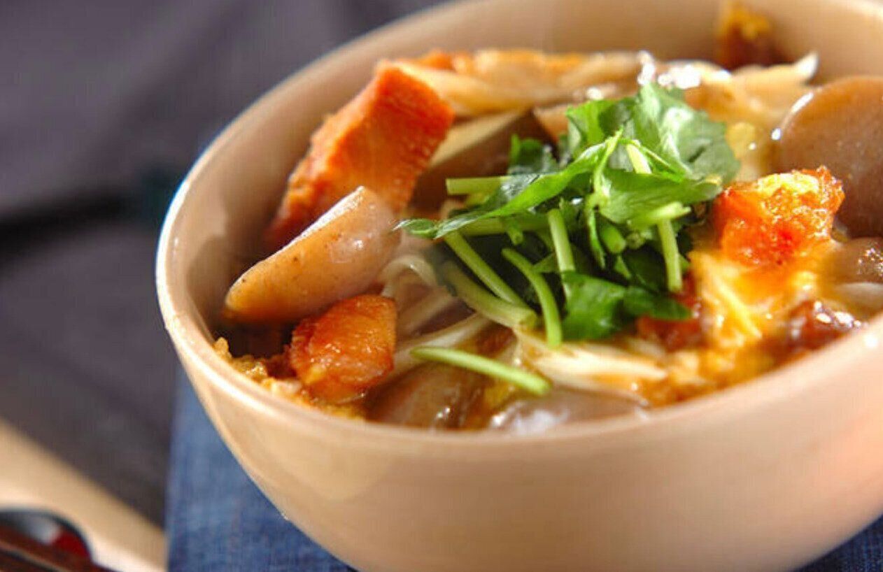 いそがしいときにも簡単につくれるアイデア親子丼のレシピです。鶏肉は缶詰の焼き鳥缶を使うことで火を通す手間がありません。玉こんにゃくを具材に加えることで、少ない鶏肉の量でも食べ応えがアップし、カロリーも抑えることができます。