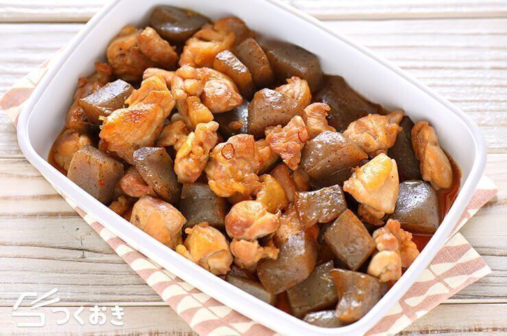 鶏もも肉とこんにゃくをつかった、甘辛味がおいしい白米との相性ぴったりな一品です。こんにゃくは包丁で切らずに一口大にちぎることで、味がからみやすく、よりおいしくなります。