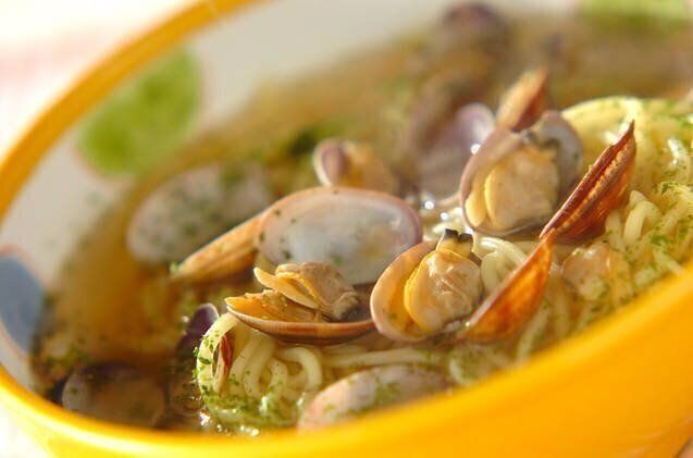 「アサリのエスニック素麺」は、あさりをメインとしてつくるそうめん。パクチーを入れエスニックな味わいになりますよ。サラサラっと食べられるので食欲がないときにもおすすめ。あさりのうま味を存分に味わえます。