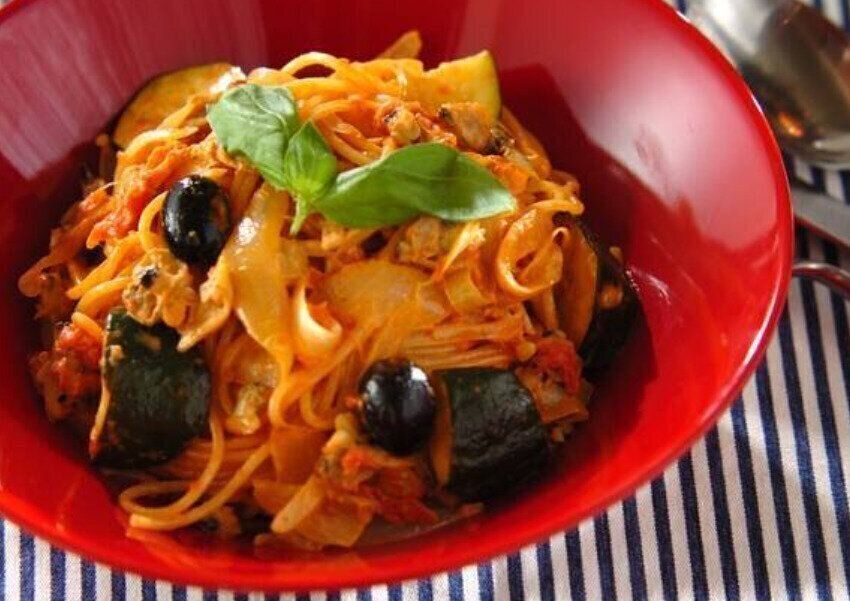 アサリと水煮トマトを使ったトマトクリームパスタ。玉ねぎやズッキーニも入れて、味わい豊かに仕上げます。缶詰を使って手軽に仕上げるのもよいですね!さっぱりとしたサラダや、チーズとの相性も◎です!