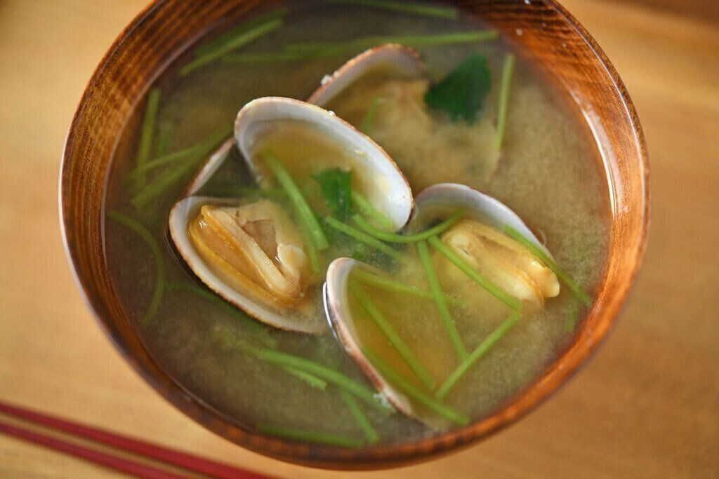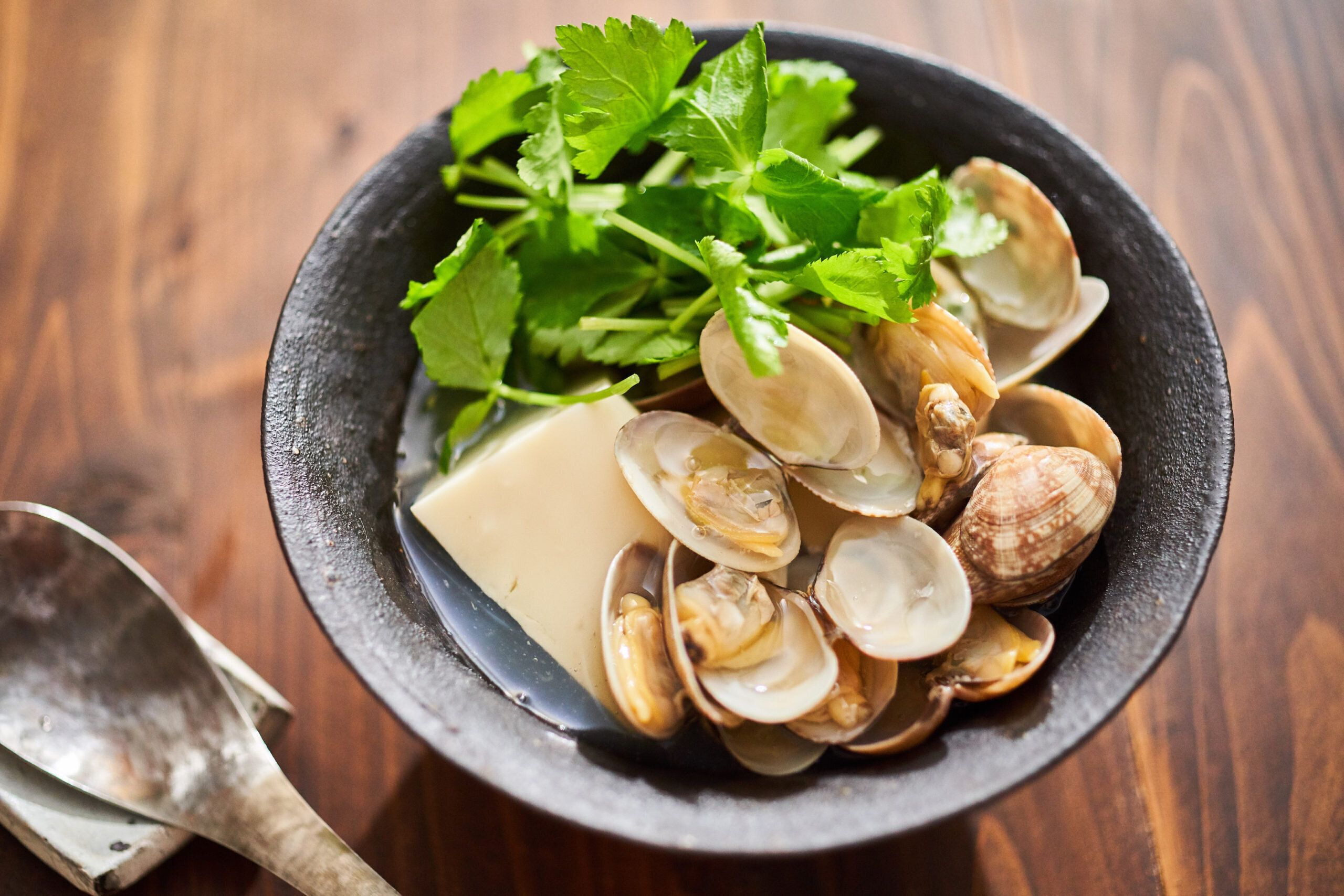 「アサリの豆乳汁」は、あさりのうま味がたっぷりとでた出汁と豆乳を合わせてつくる一品。しょうゆを入れることでコクも感じられます。豆乳を入れることでマイルドに味わうことができますよ。